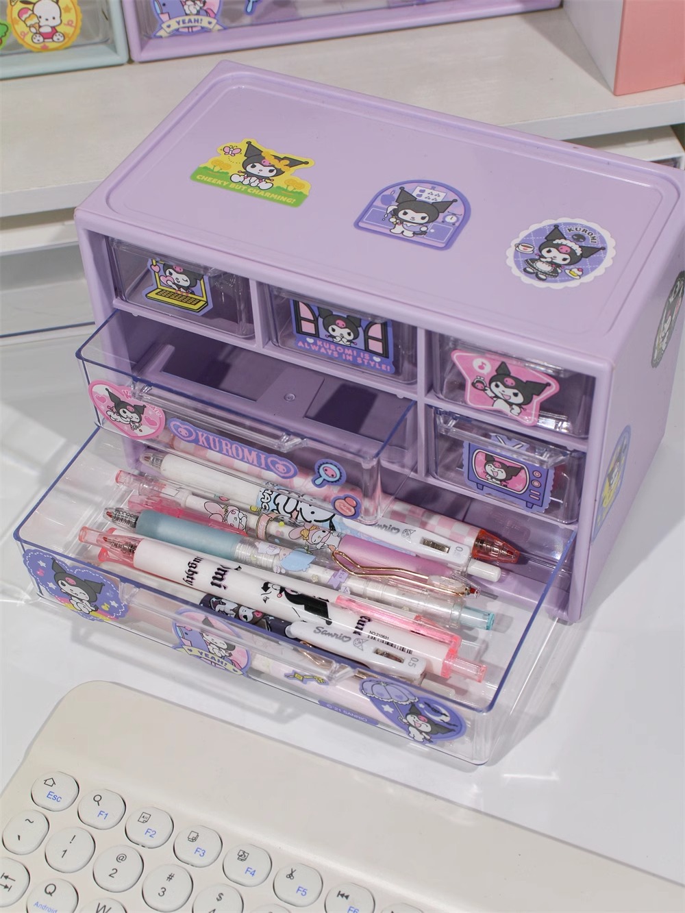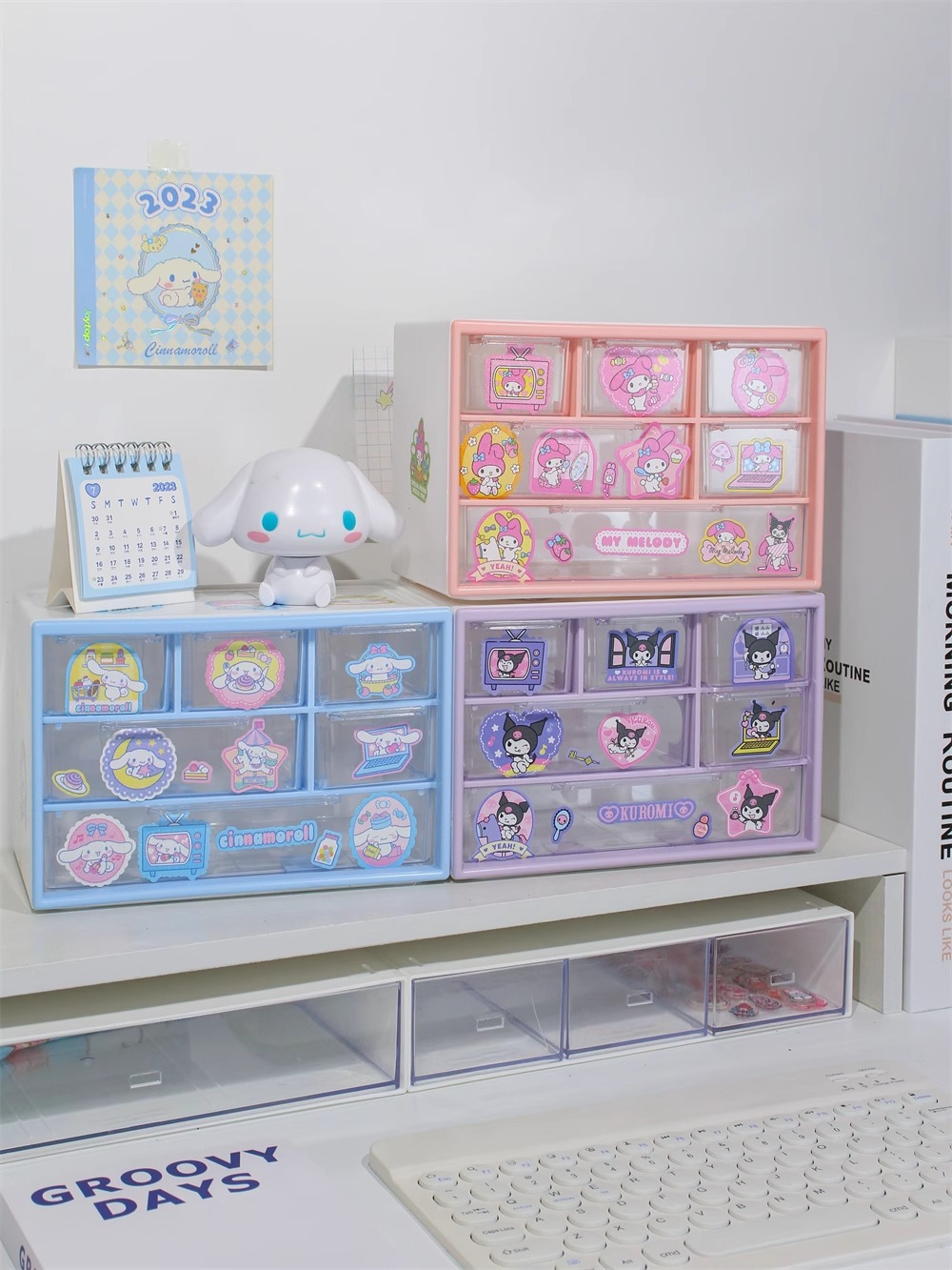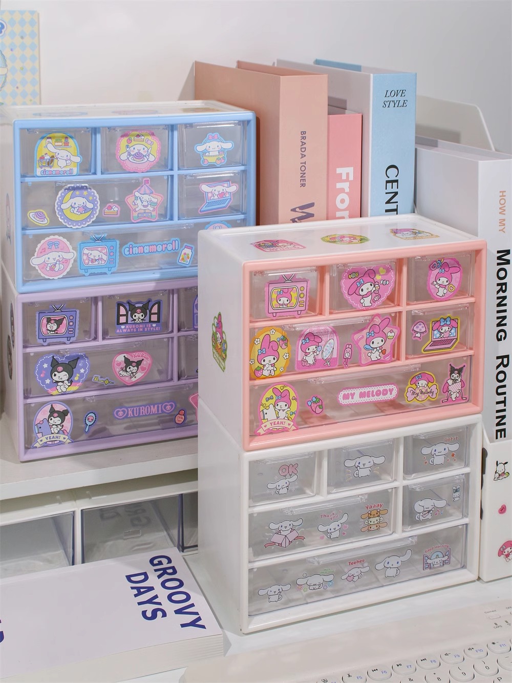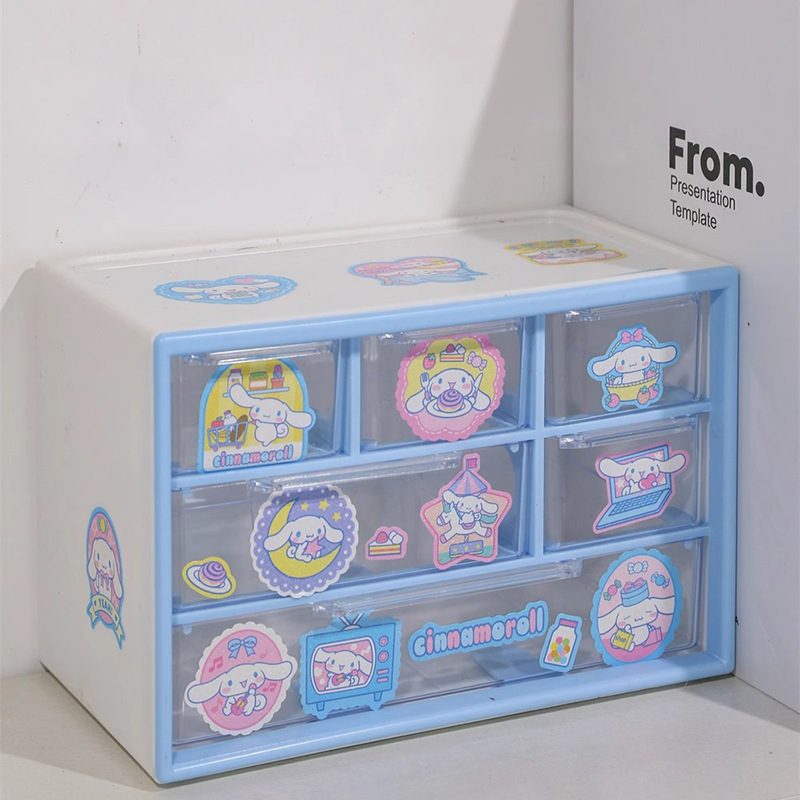 New Version of Cute Six-Square Grids Storage Box Drawer Book Desktop Women's Jewelry Cabinet Small Organizer Guka Sticker Storage Rack