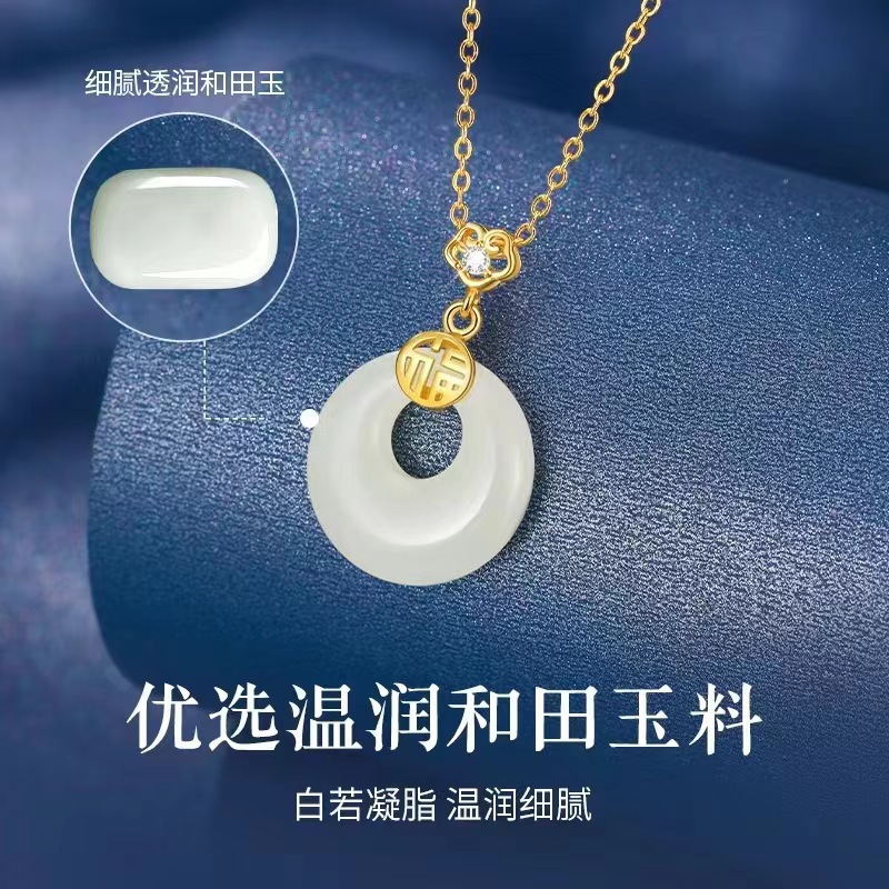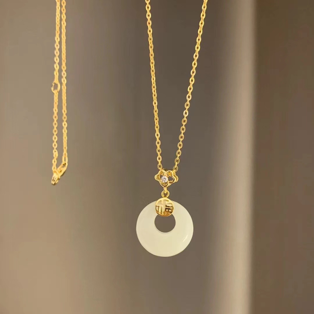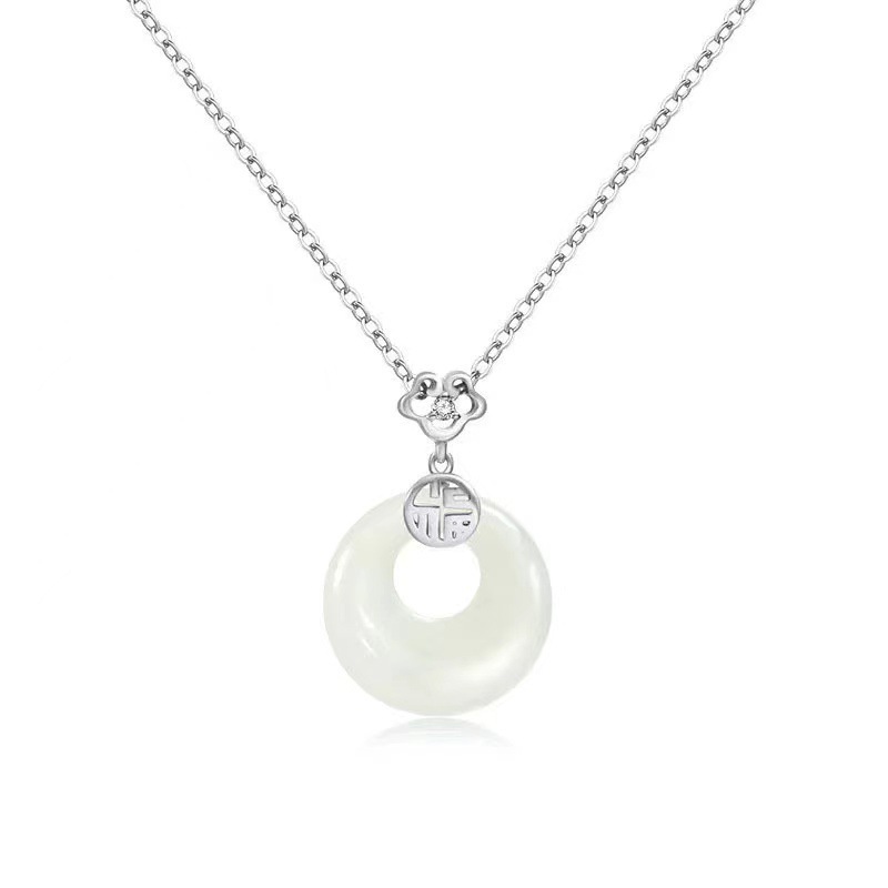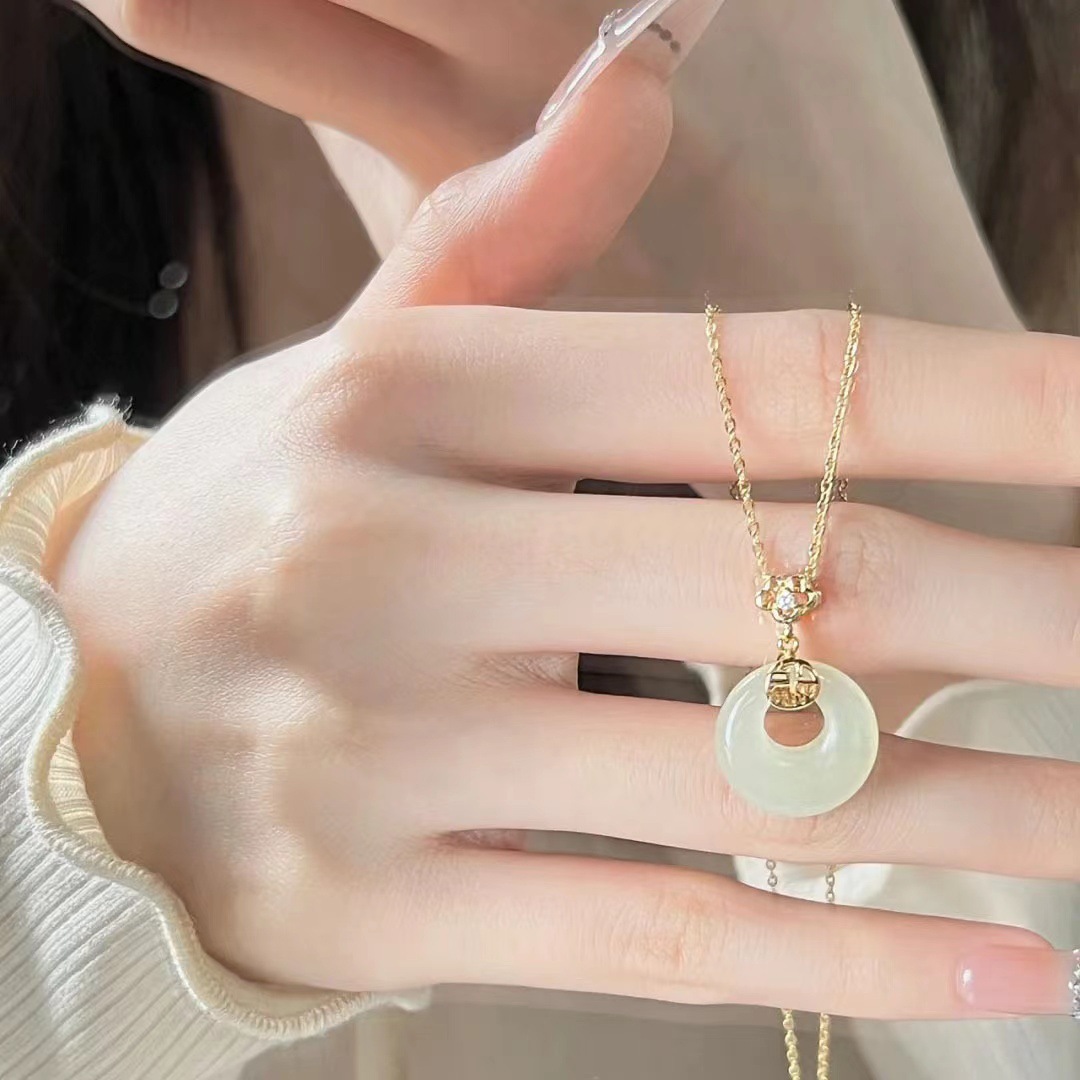 S925 sterling silver Hetian jade safety buckle necklace women's new Chinese ethnic ancient style niche high-grade Hetian jade jewelry