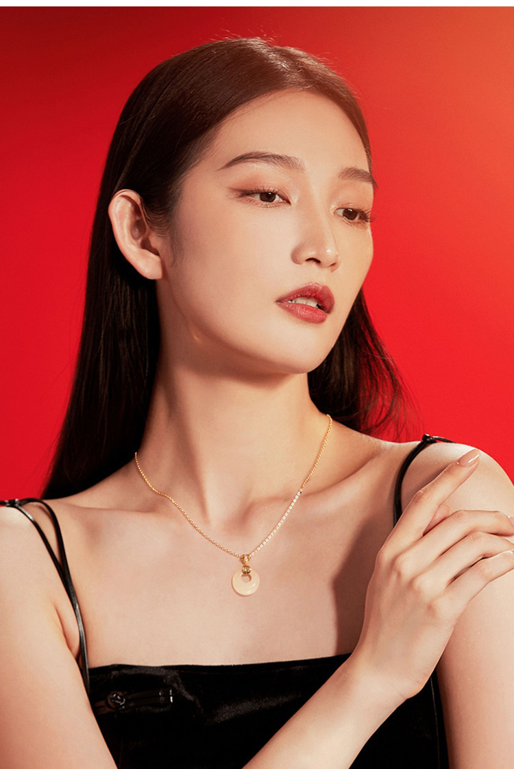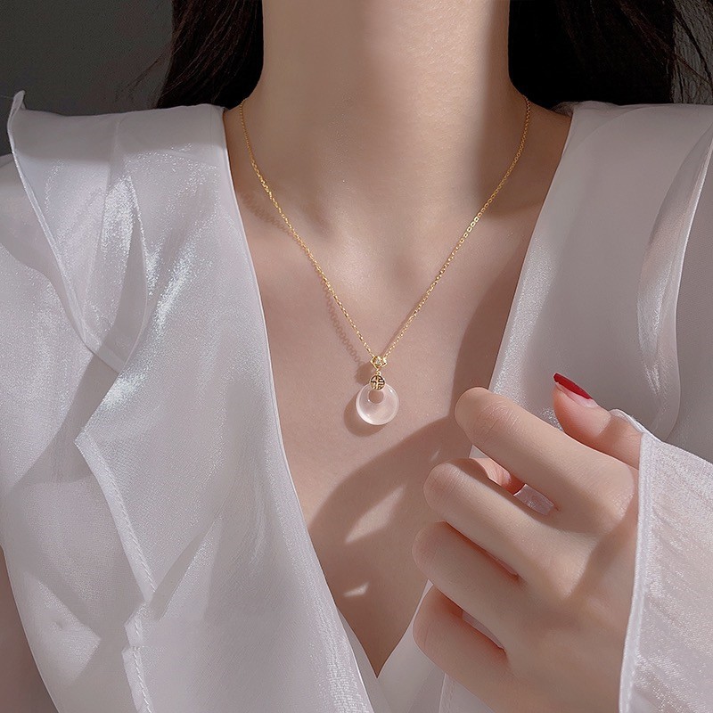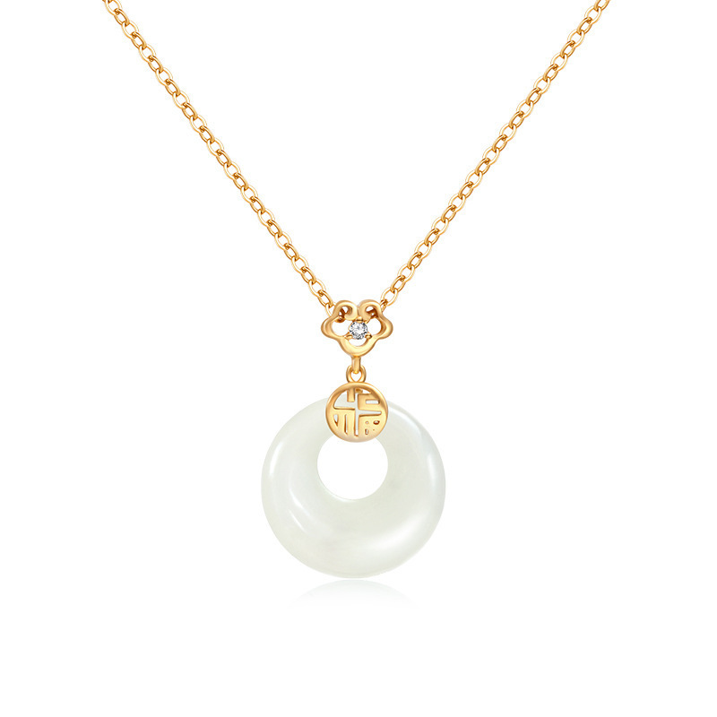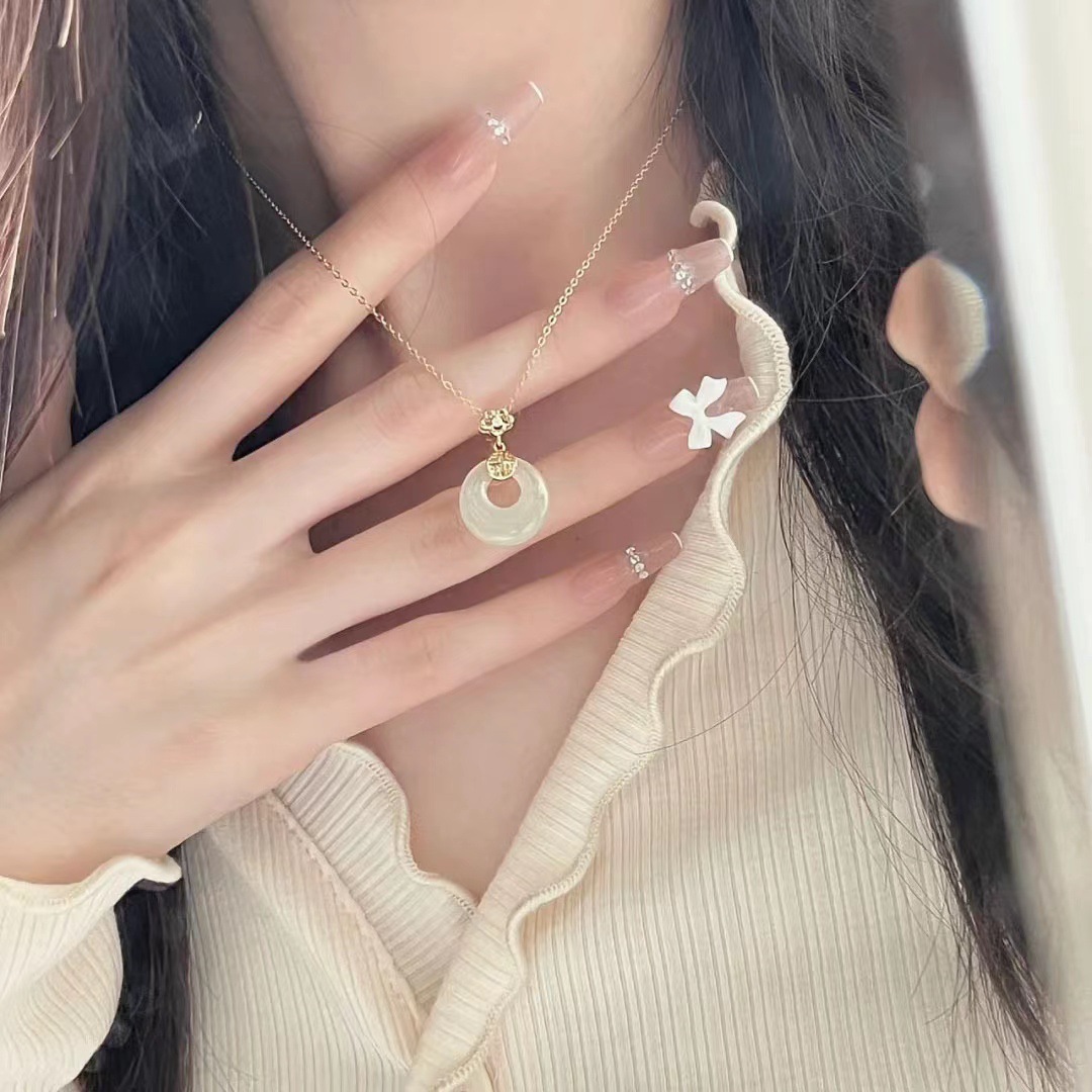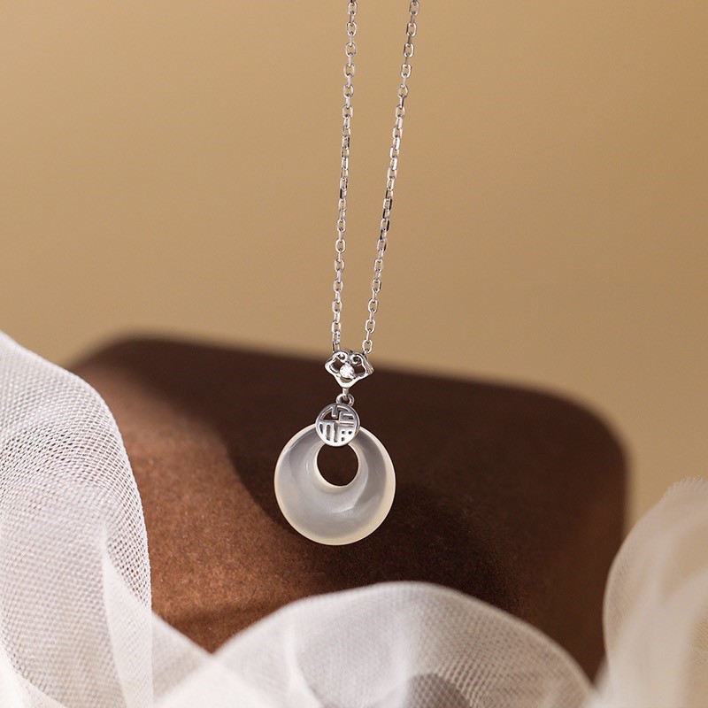 S925 sterling silver Hetian jade safety buckle necklace women's new Chinese ethnic ancient style niche high-grade Hetian jade jewelry