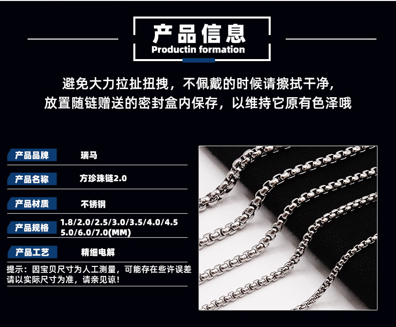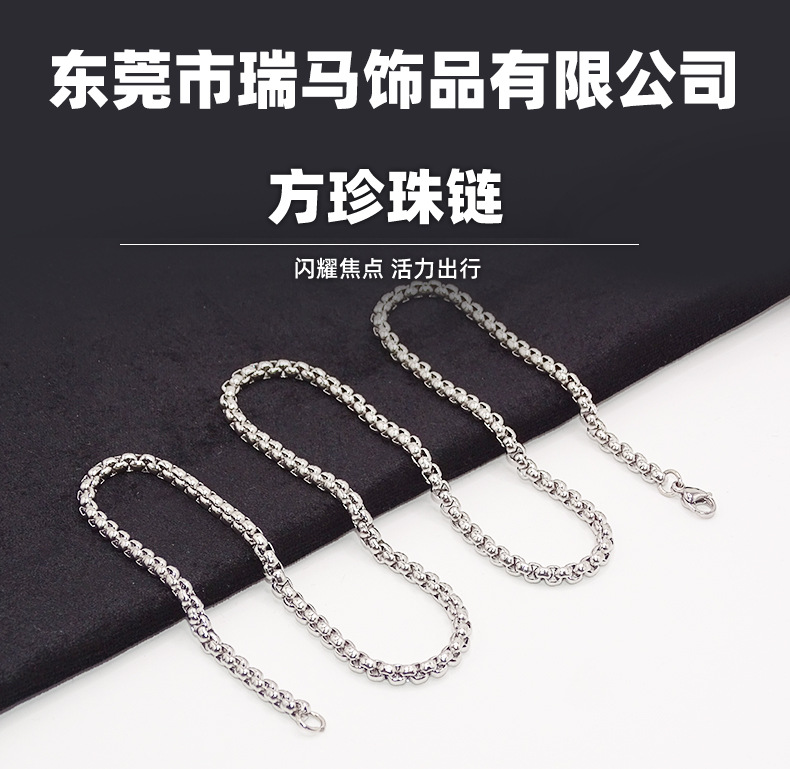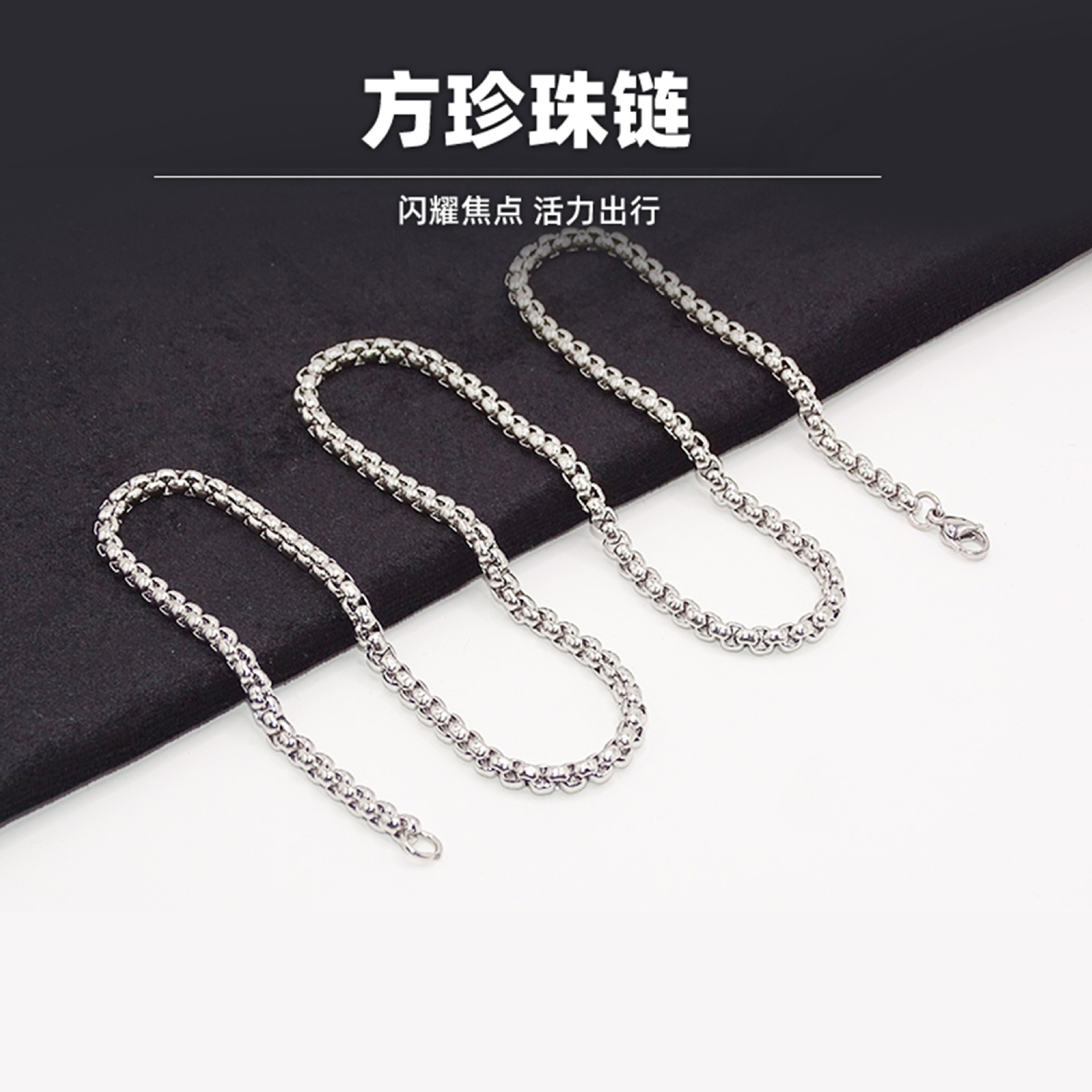 Customized Popular Trendyy Japanese and Korean Fashion Hiphop Long Personalized Couple Accessories Square Pearl Stainless Steel Necklace