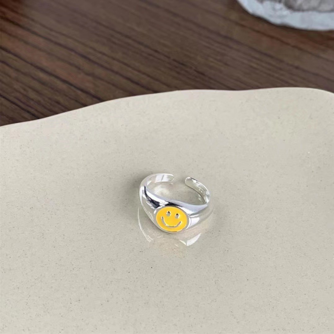 Ugly, Funny and Stylish, Cute and Versatile Oil-Dropping Smiley Ring for Women, Ins Trendy Niche Design Open Ring