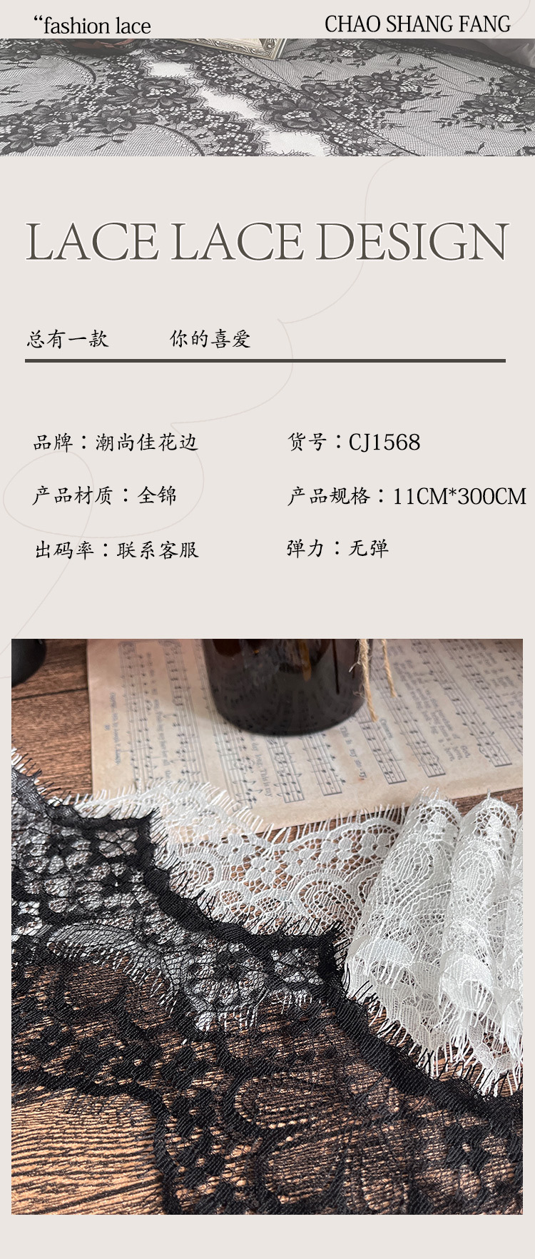 Factory Direct in stock French style 11cm non-elastic eyelash lace handmade diy wedding headdress jewelry