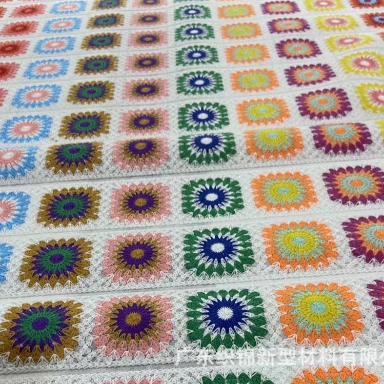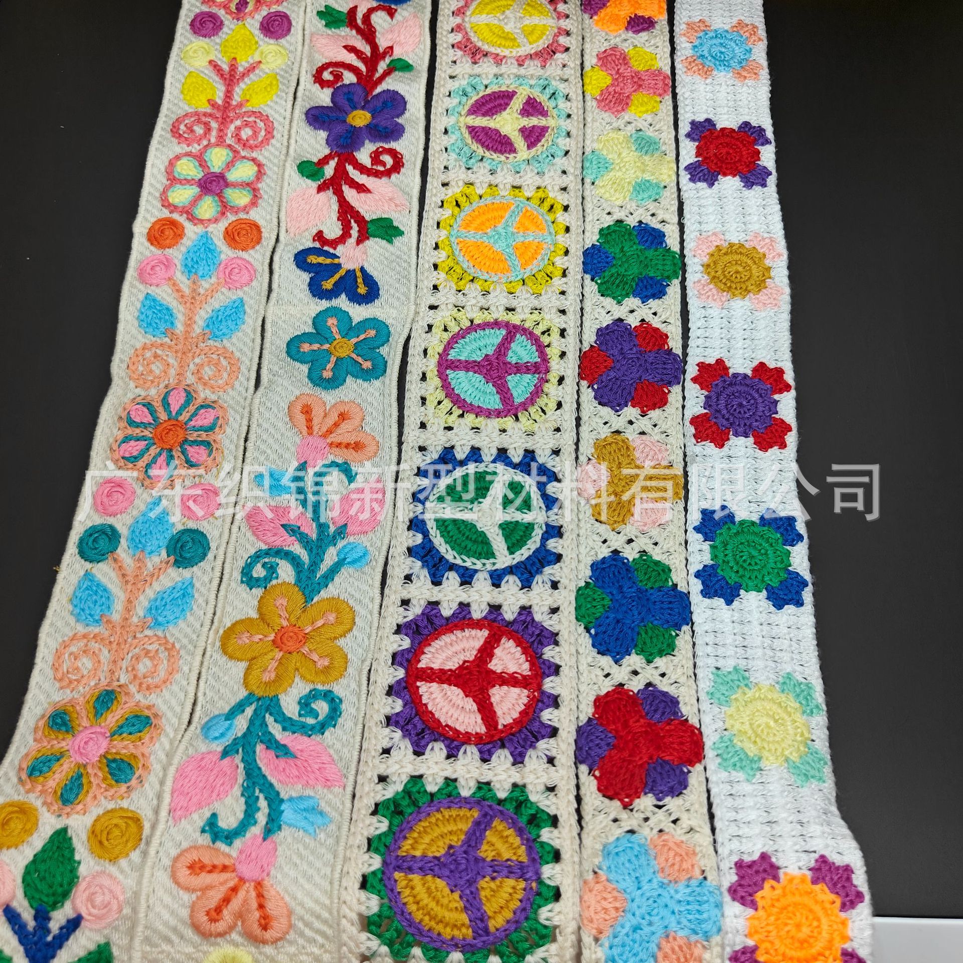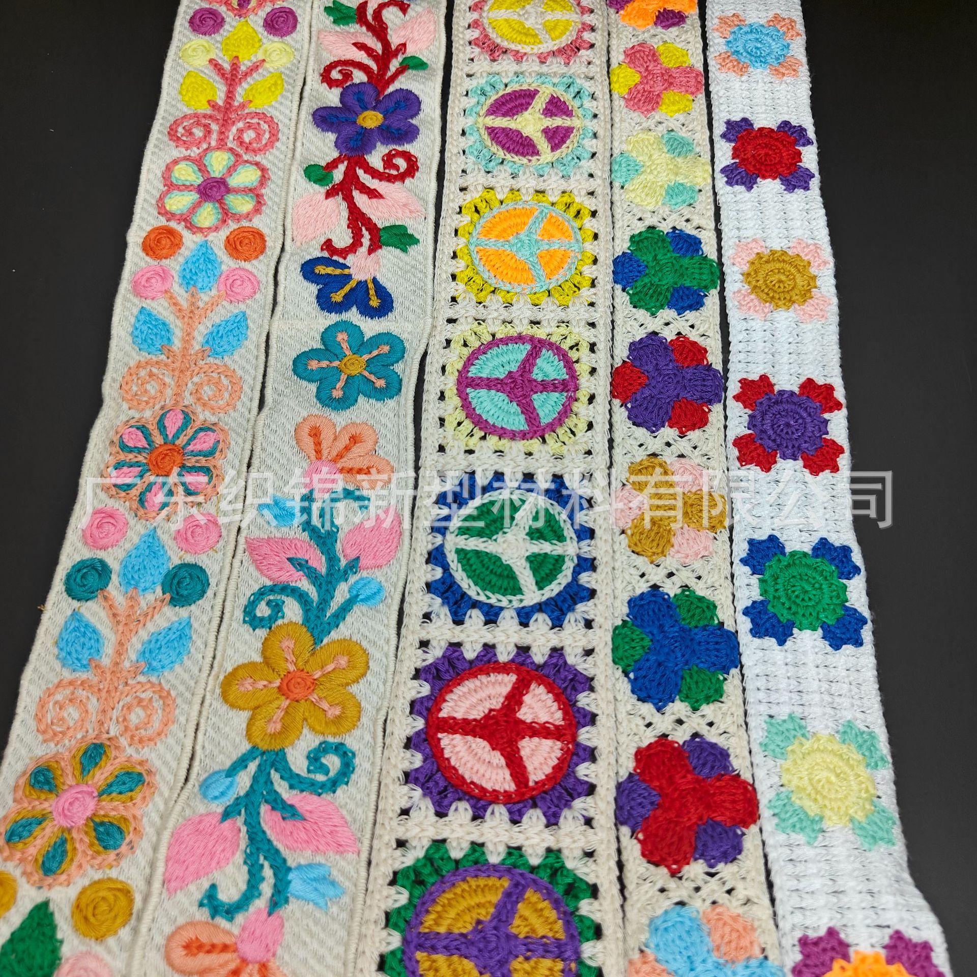欢迎咨询仿手钩、仿手绣、仿手勾民族风条码织带花边,可加工为半成品鞋材鞋面,箱包背带,服装辅料等,实力绣花工厂,专业电脑刺绣,支持定制加工各式花纹~