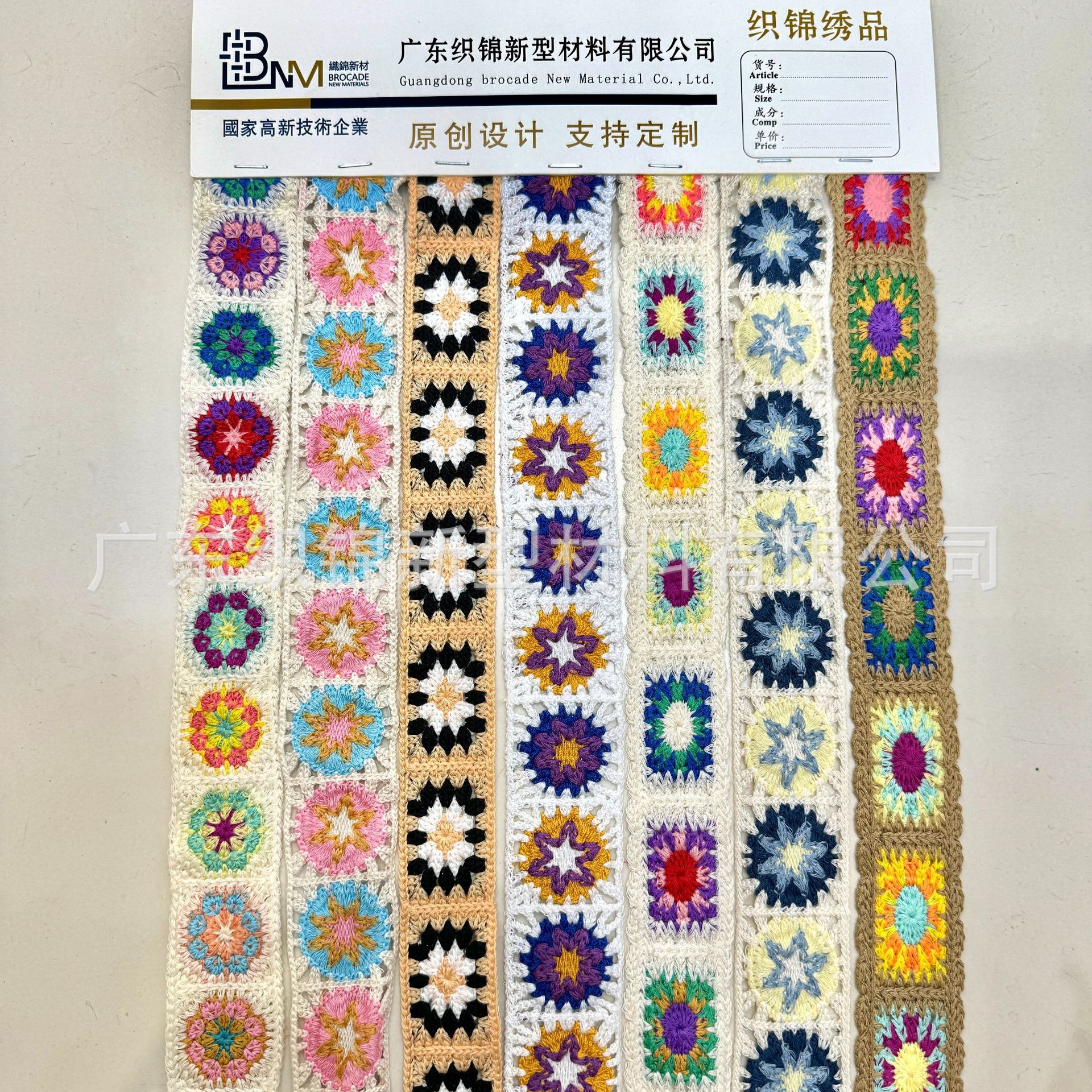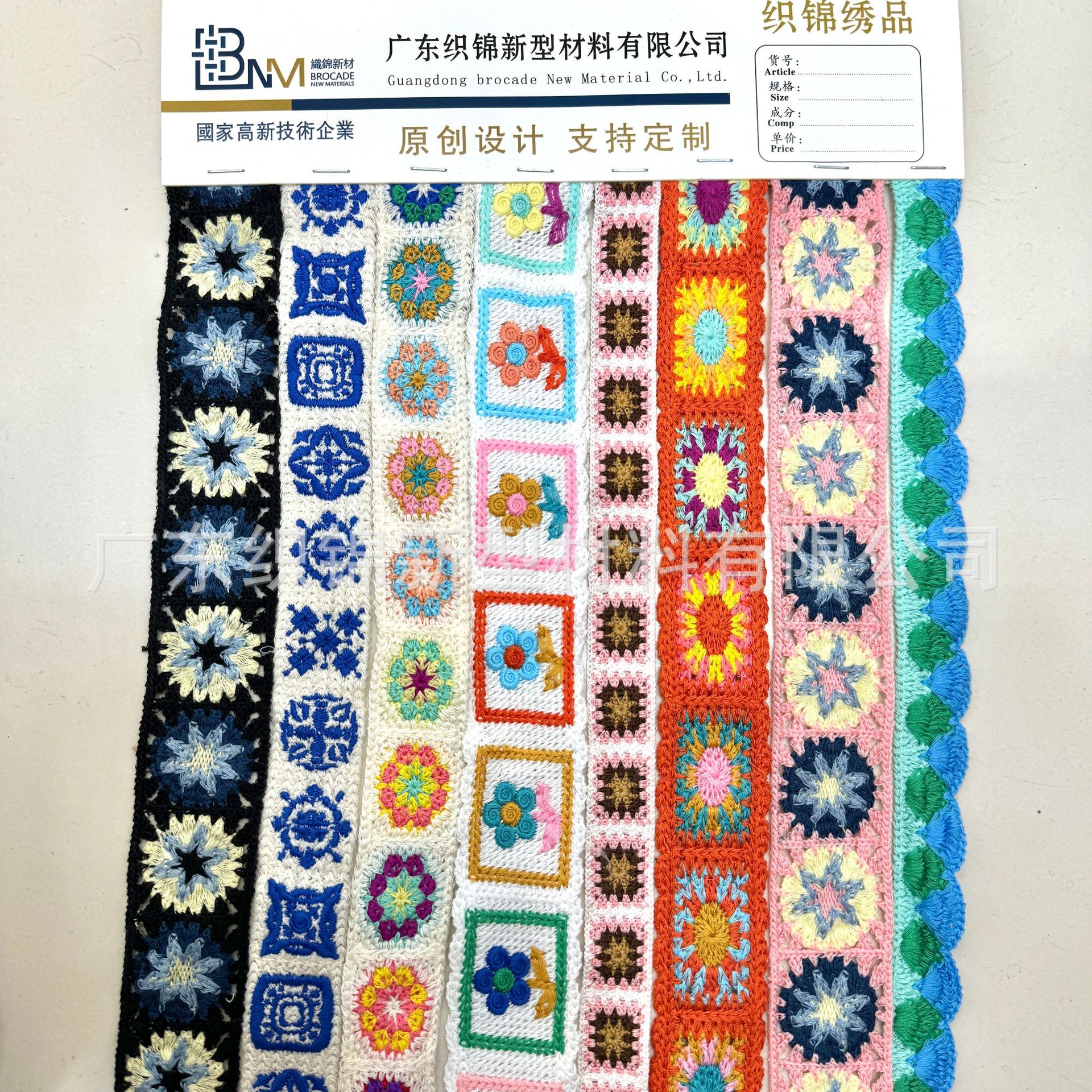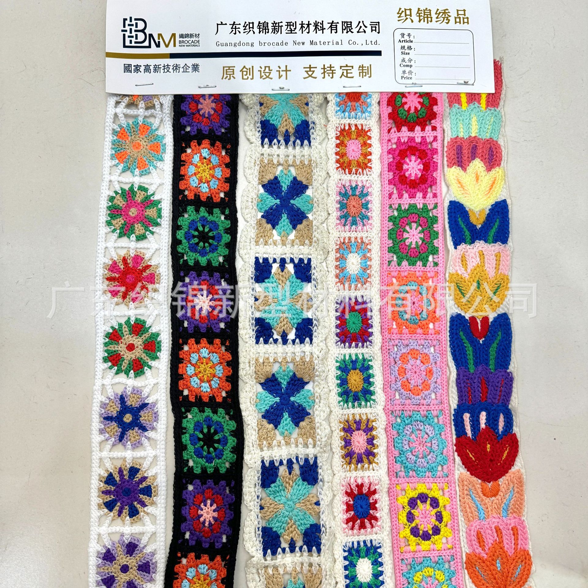 欢迎咨询仿手钩、仿手绣、仿手勾民族风条码织带花边,可加工为半成品鞋材鞋面,箱包背带,服装辅料等,实力绣花工厂,专业电脑刺绣,支持定制加工各式花纹~