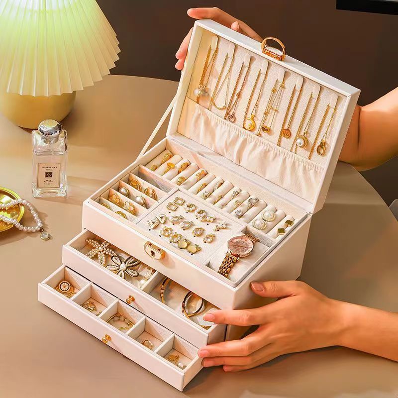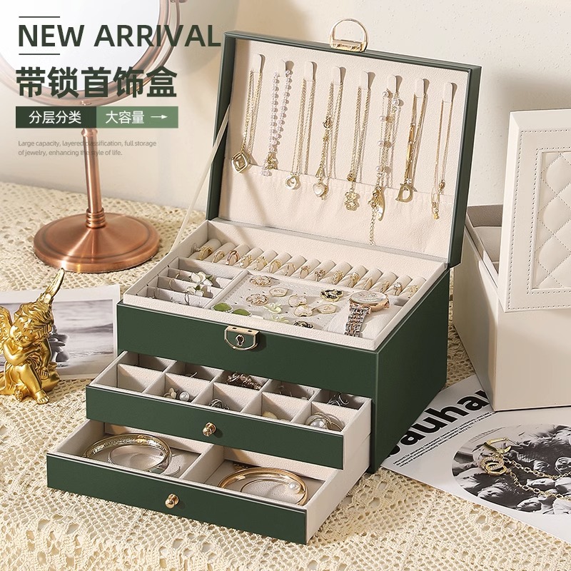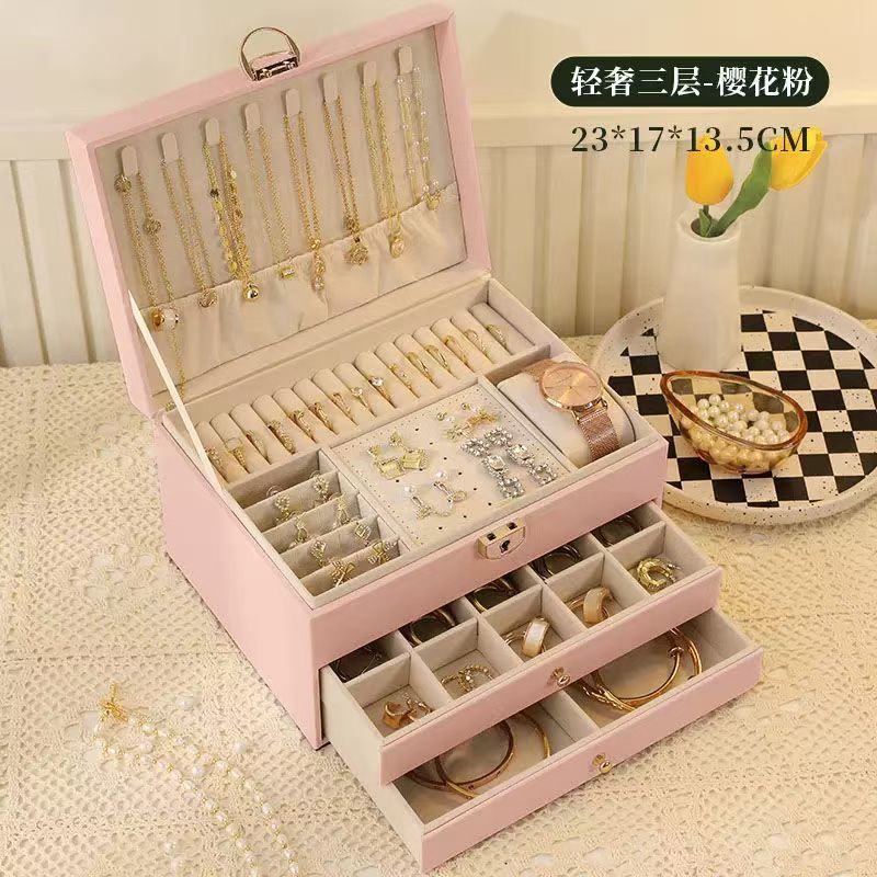 Three-Layer Jewelry Storage Box Necklace Earrings Gold Jewelry Hand Jewelry Box Large Capacity Multi-Layer Gift Box Bracelet