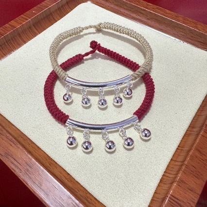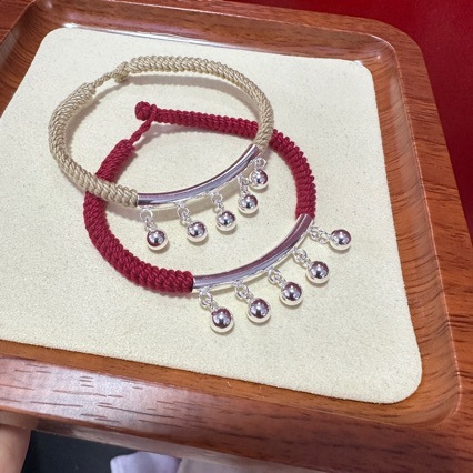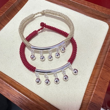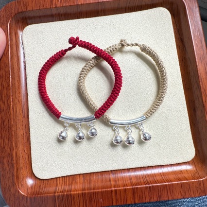 Pure Silver 999 small Bell elbow braided rope chain one step sterling silver ancient style new Chinese bracelet for girlfriend girlfriend