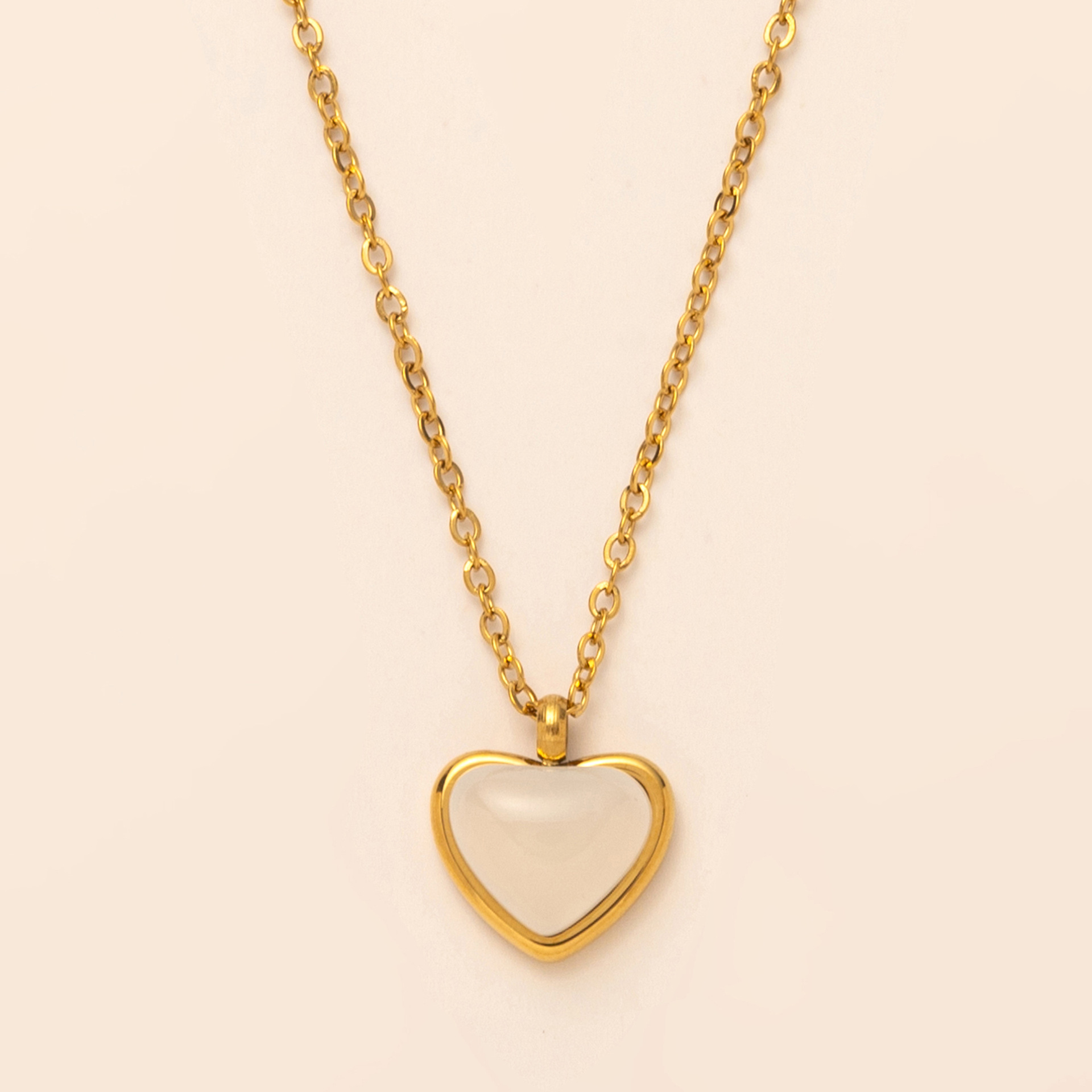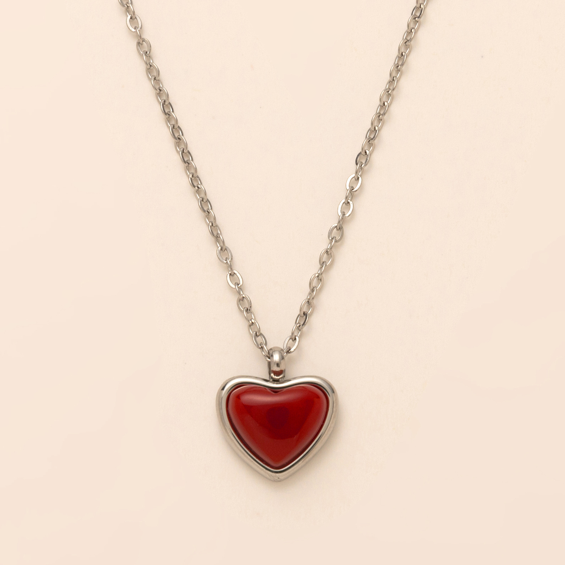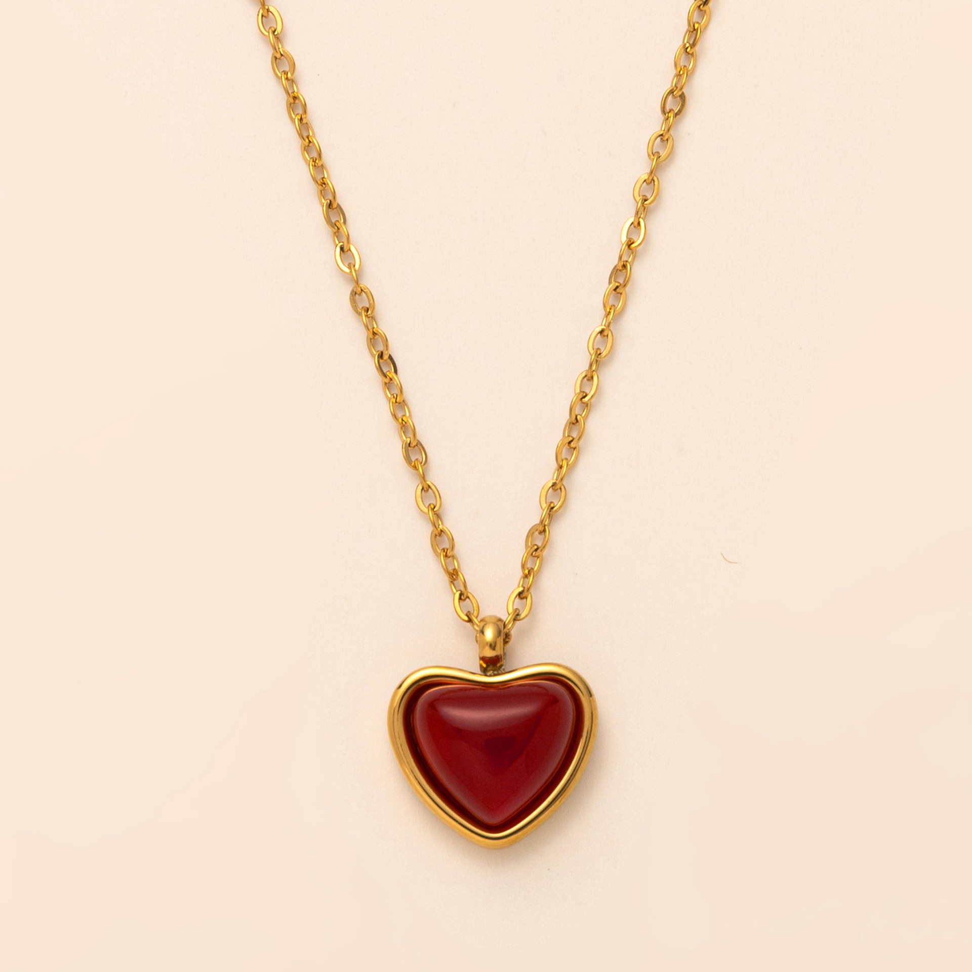 Ins Imitation Natural Stone Red Agate Pendant Heart-shaped Necklace Earrings High Color-retaining Necklace Electroplated 18K Gold Valentine's Day