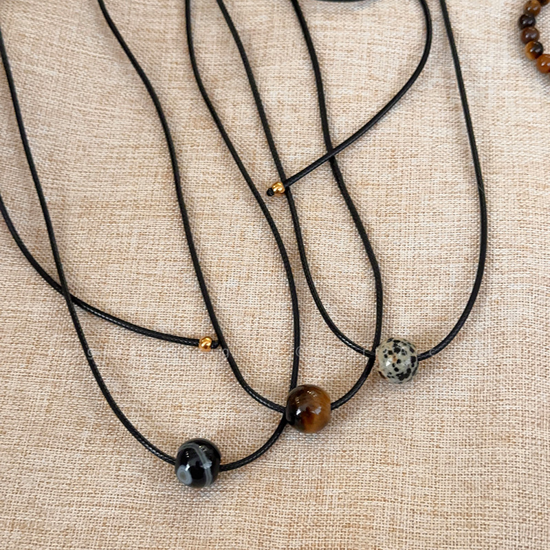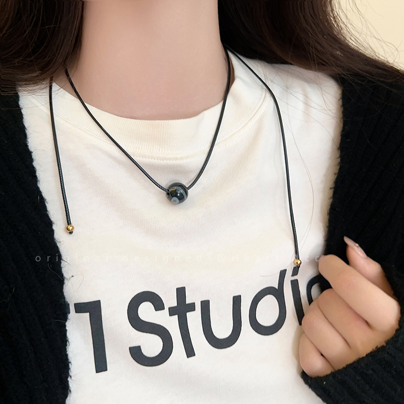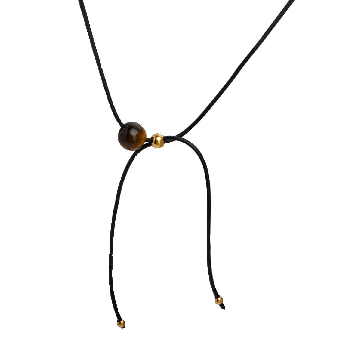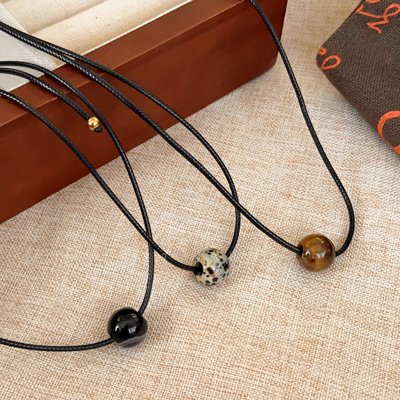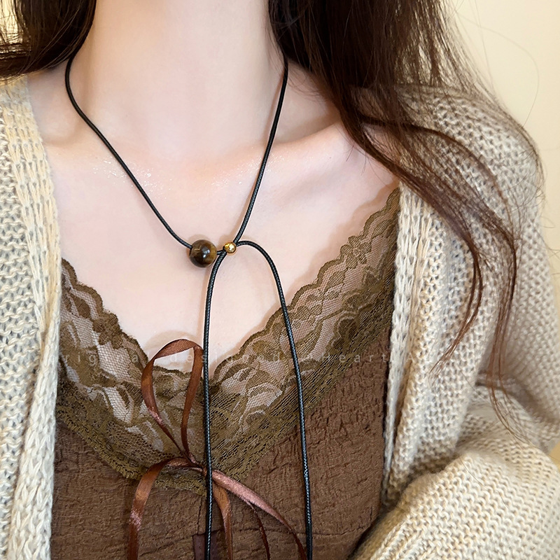 Natural Tiger Eye Stone leather rope necklace Women's Light luxury niche obsidian clavicle chain necklace choker leather neck chain