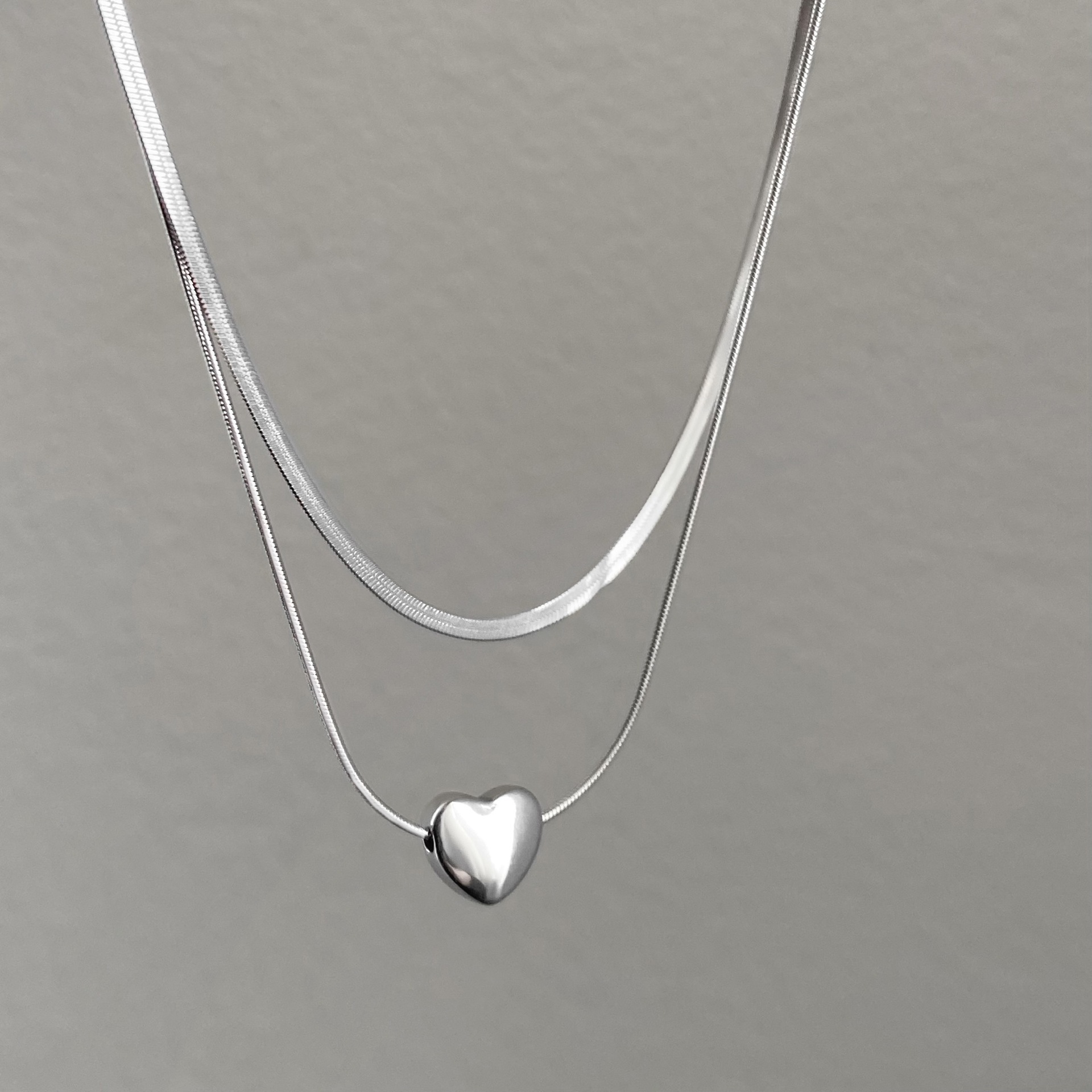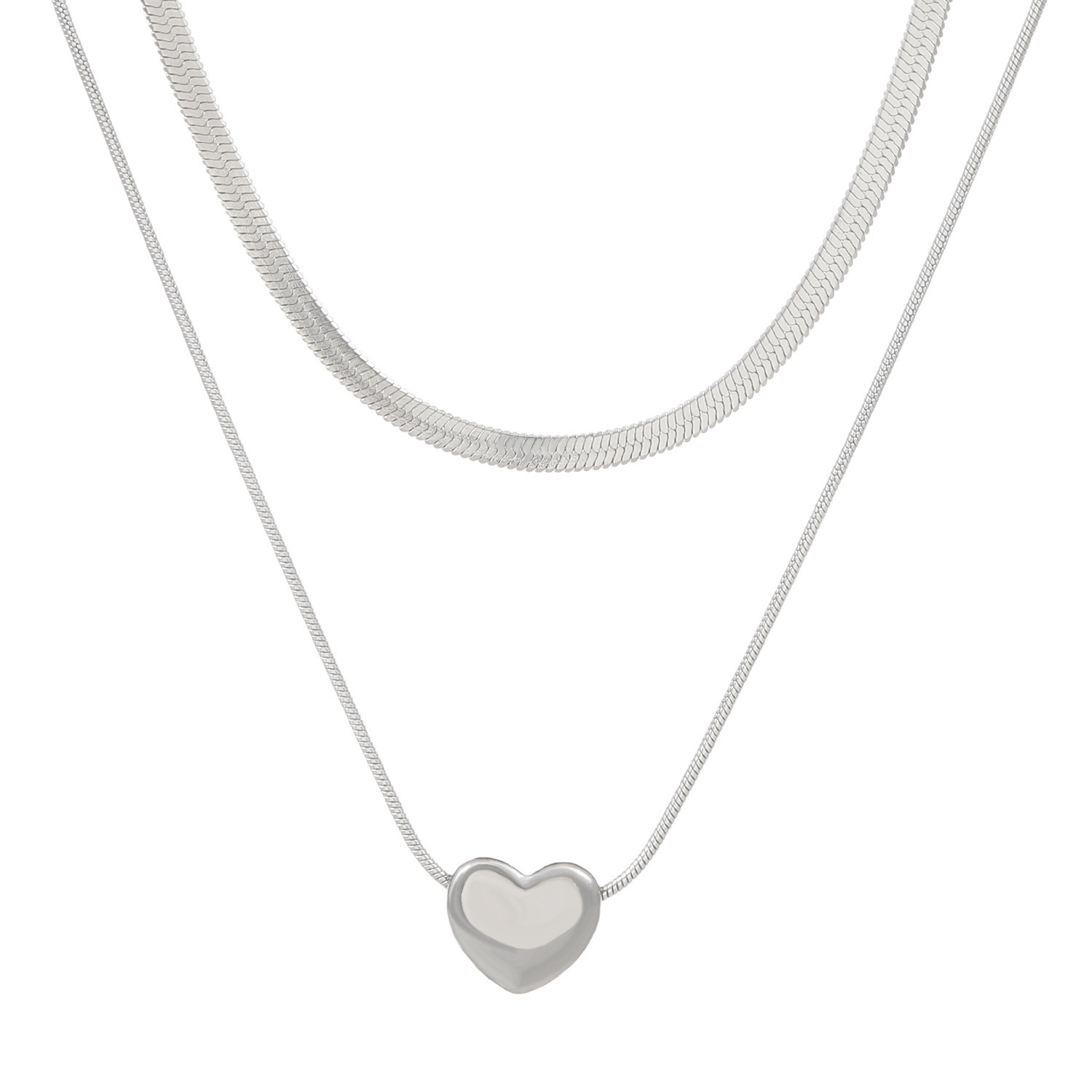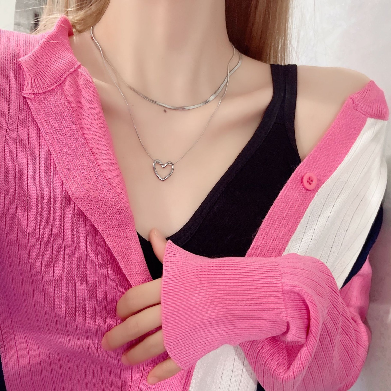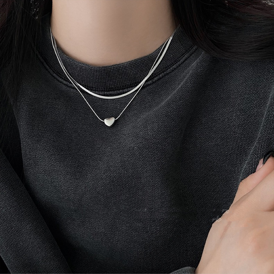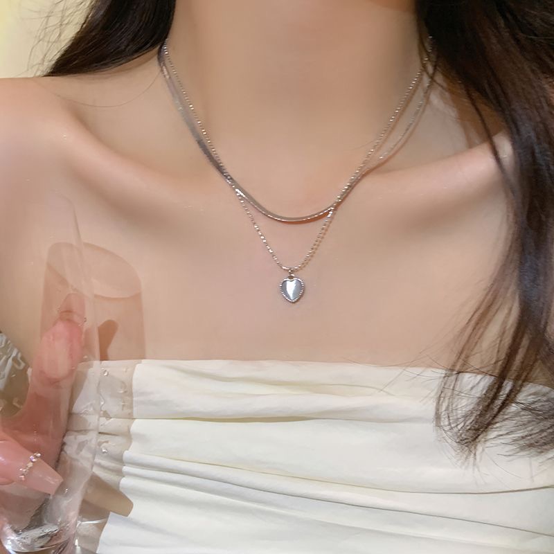 Double-Layer Stacked Titanium Steel Heart Snake Bone Necklace for Women 2025 Autumn and Winter Fashion Japanese and Korean Style Sweater Chain Versatile and Non-Fading