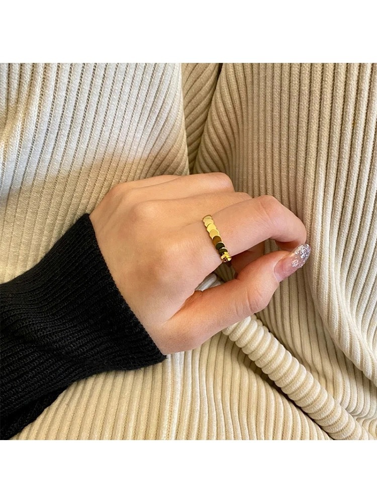 Silin New 18k golden fish scale small round ring female sparkling titanium steel non-fading couple ring