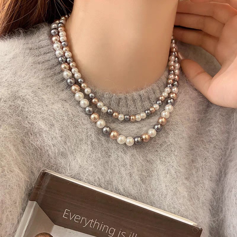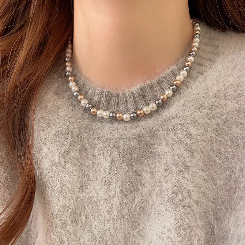Mixed color pearl necklace for women 2023 autumn and winter New sweater chain personality light luxury high-grade necklace clavicle chain accessories