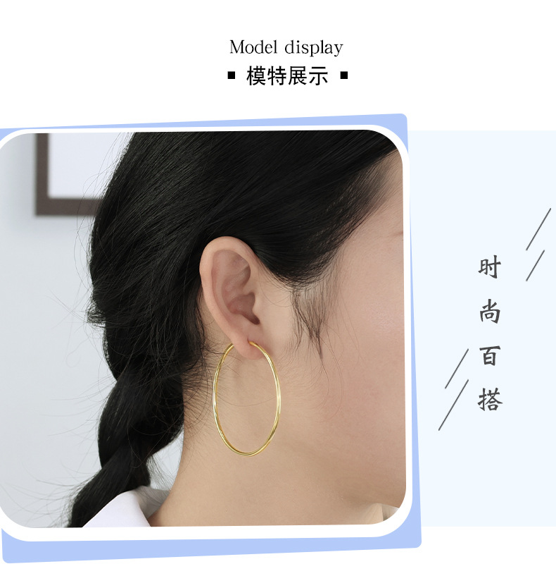 Color: 2.0*50mm (inner diameter) stainless steel round earrings/vacuum gold plating