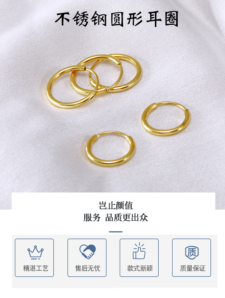 Color: 1.6*8mm (inner diameter) stainless steel round earrings/vacuum gold plating