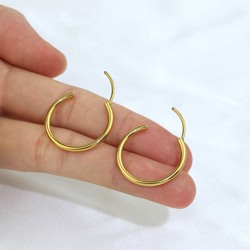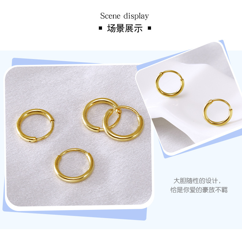 Color: 1.6*10mm (inner diameter) stainless steel round earrings/vacuum gold plating