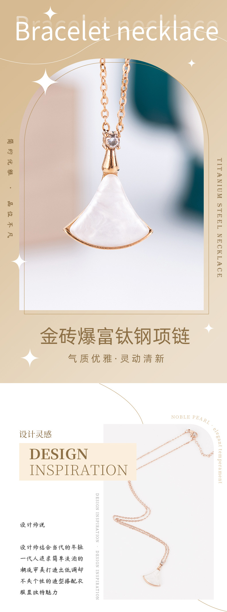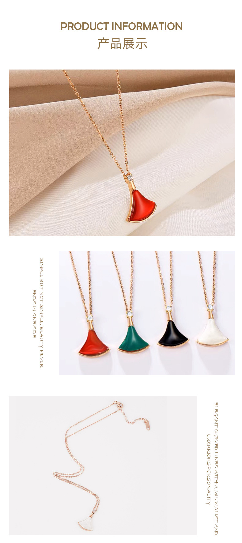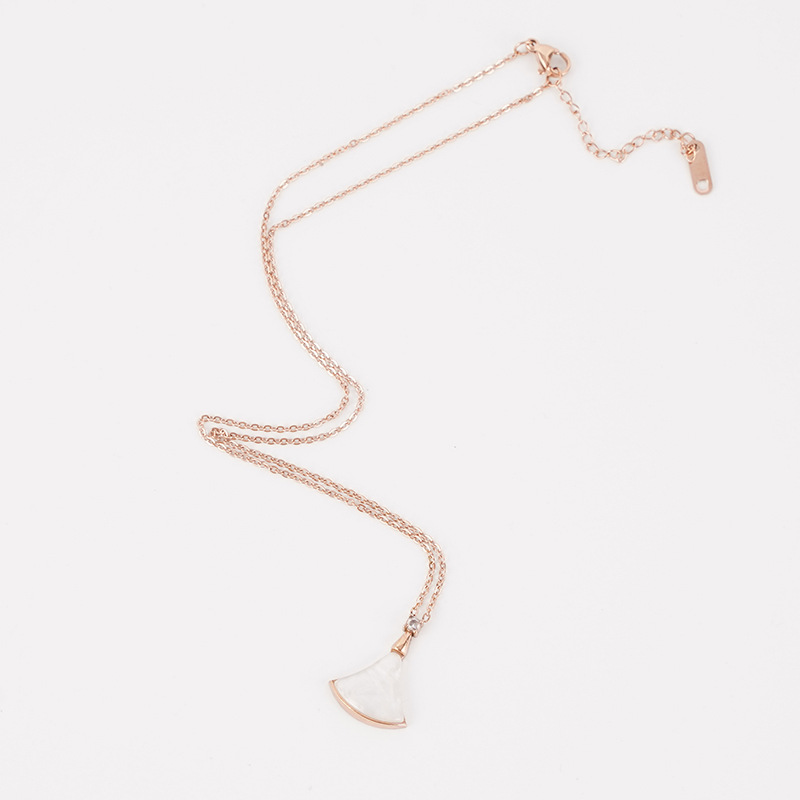 Cross-border New Style Spice Girls White Fritillary Small Skirt Fan-shaped Titanium Steel Rose Gold Necklace Women's Collarbone Chain Design Sense Light Luxury