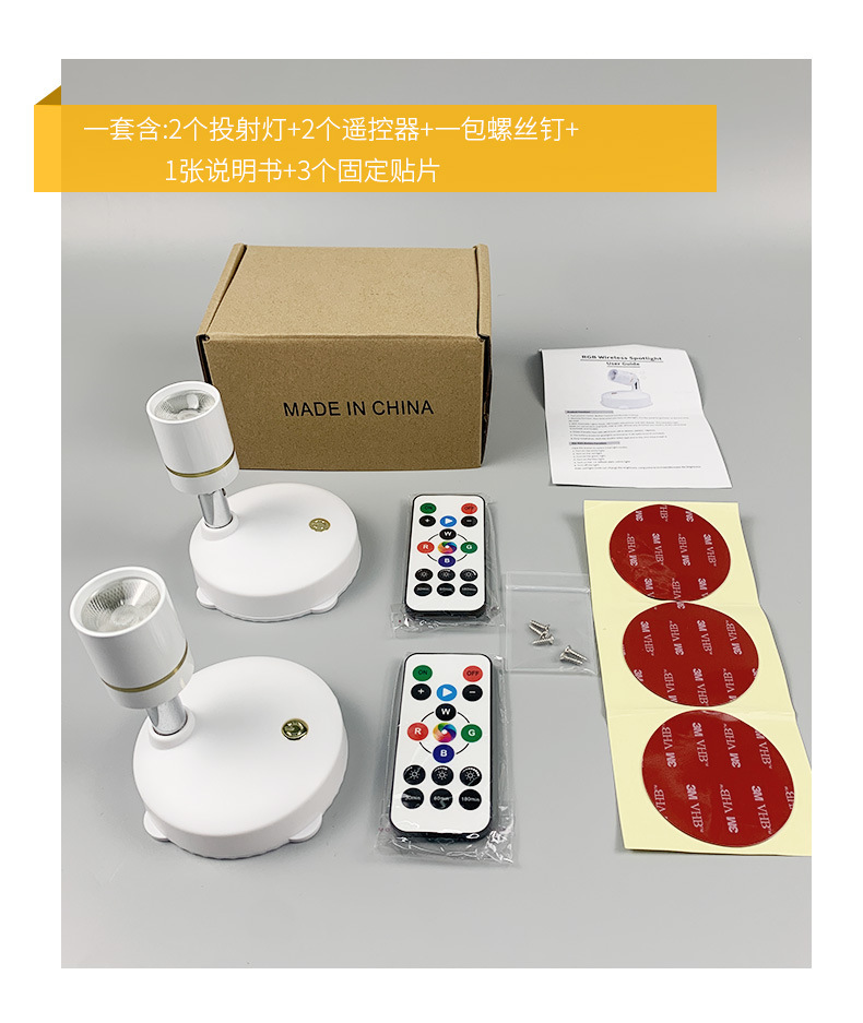 两支装内含:2灯+2遥控,3个贴片,1套螺丝(5个),1张说明书。