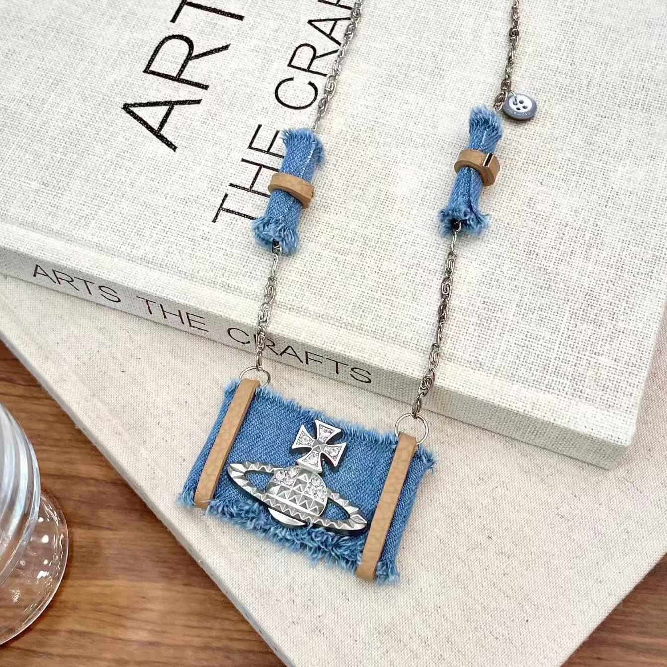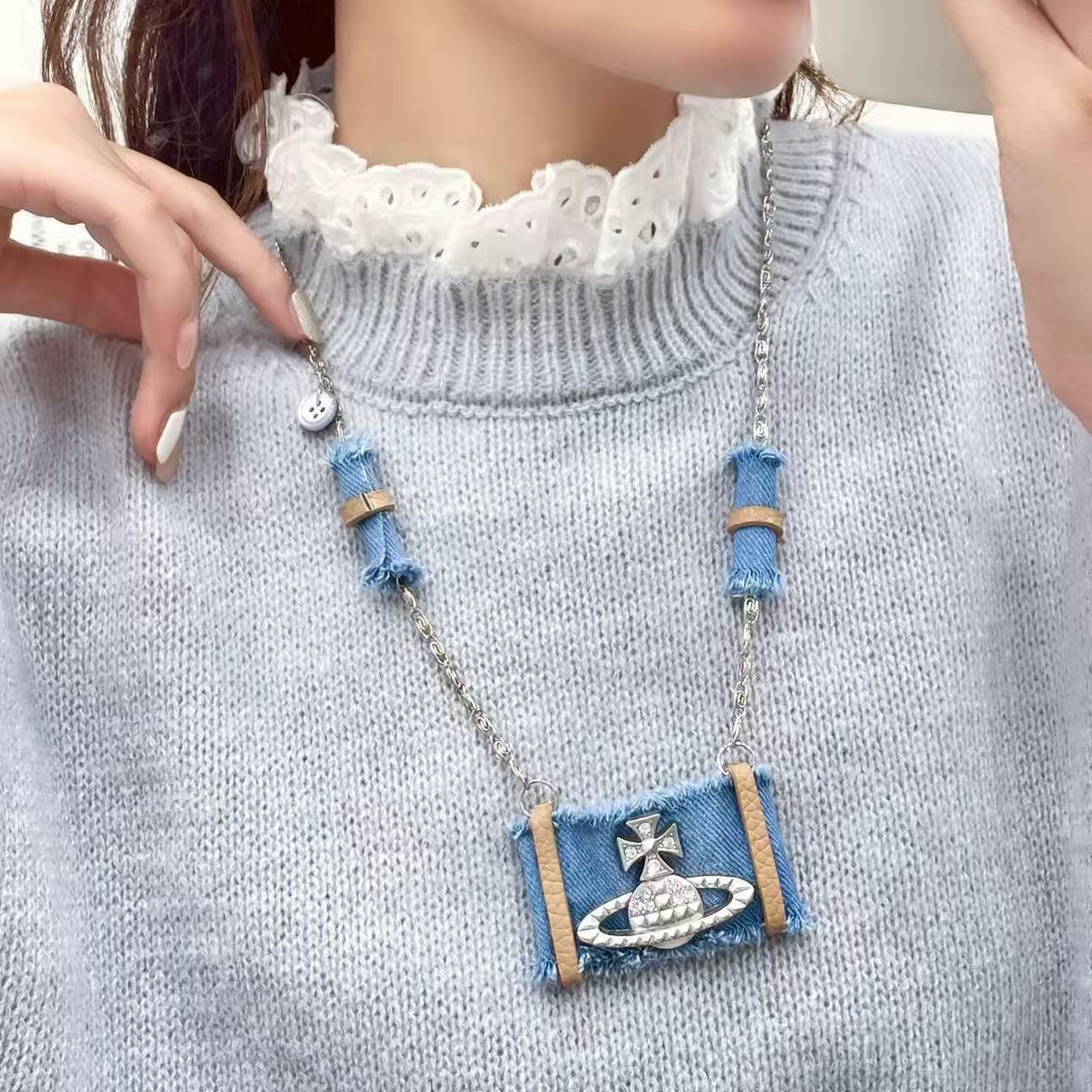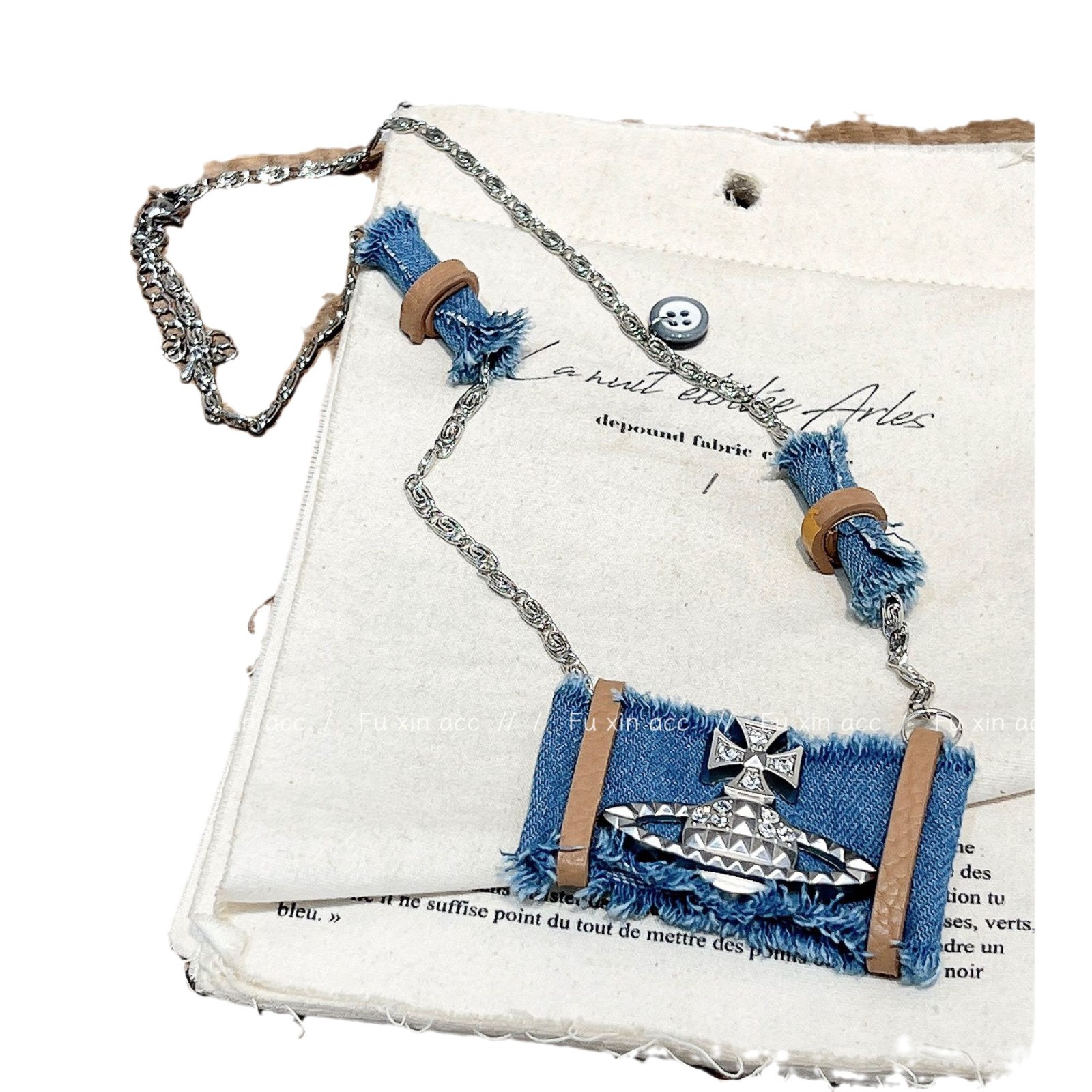 Maillard style heavy industry Denim rabbit necklace sub-culture fragmented plush stitching Saturn clavicle chain collar fashion
