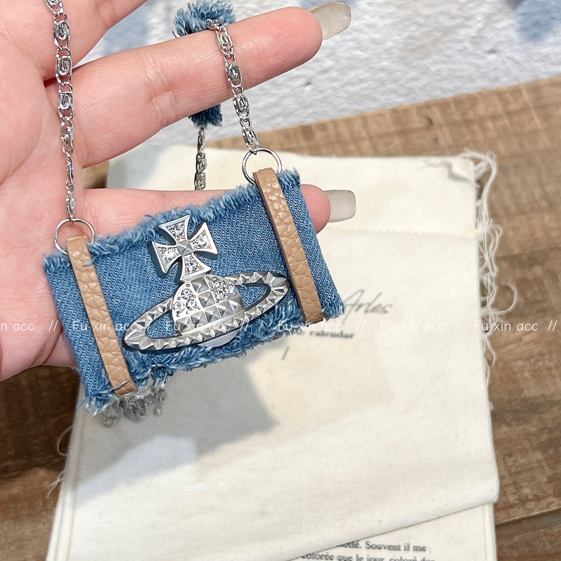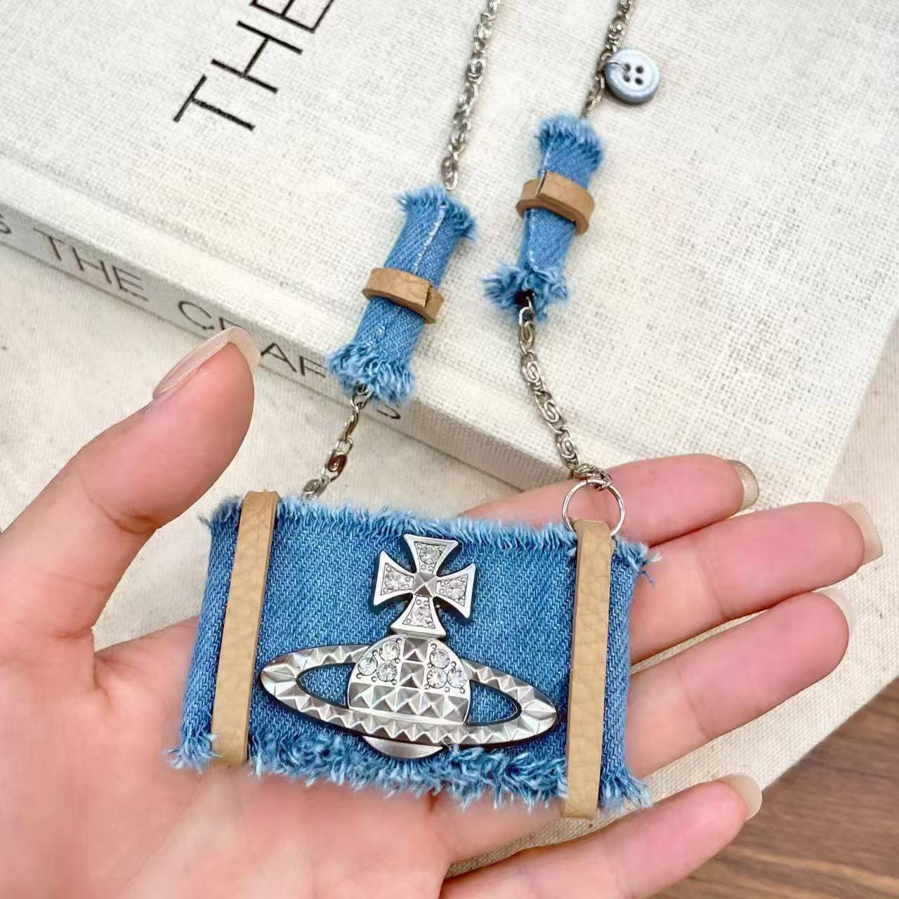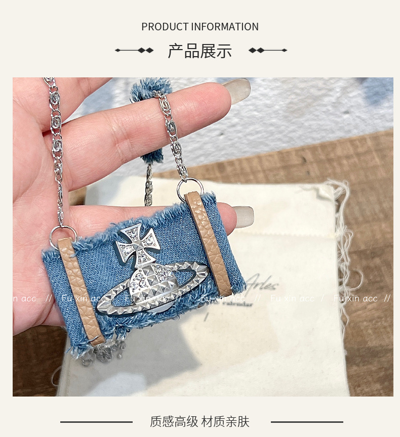Maillard style heavy industry Denim rabbit necklace sub-culture fragmented plush stitching Saturn clavicle chain collar fashion