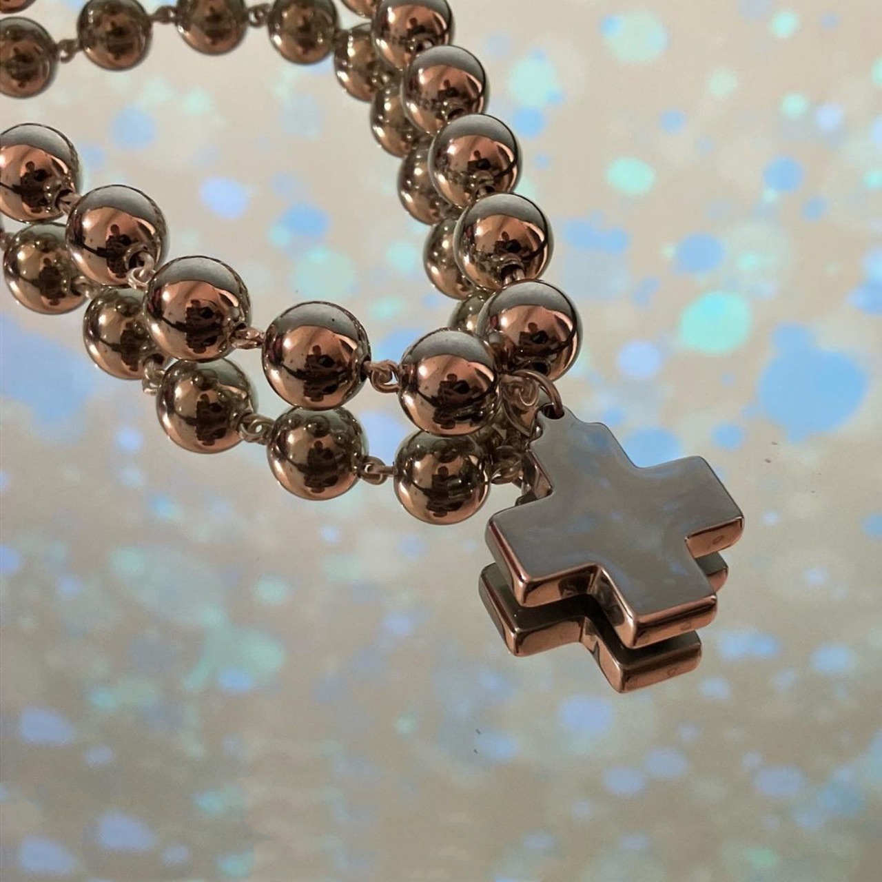 European and American cross-border hip hop thick cross accessories bead chain titanium steel necklace suit all-match titanium steel jewelry