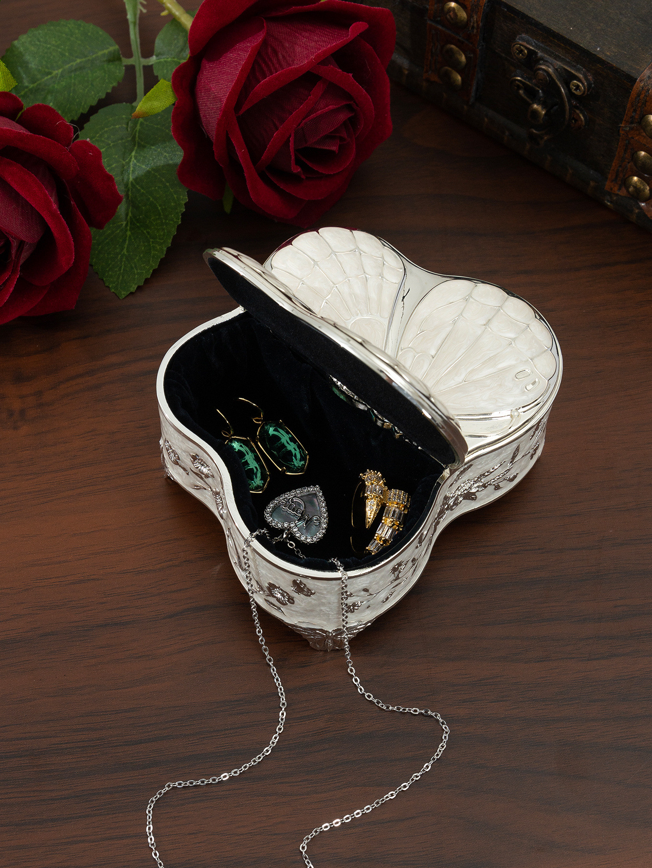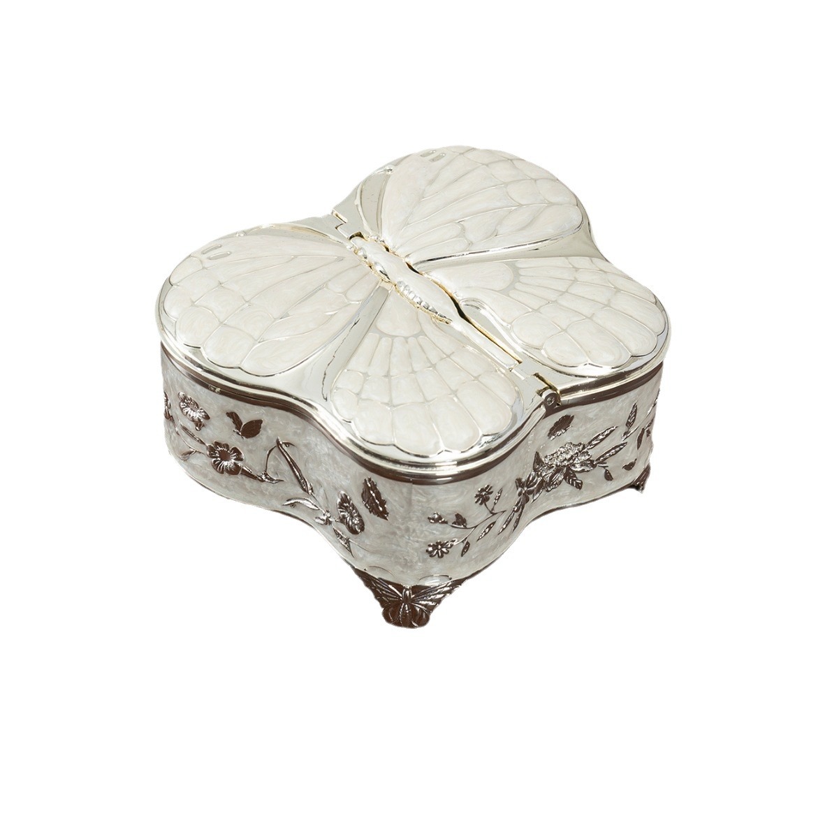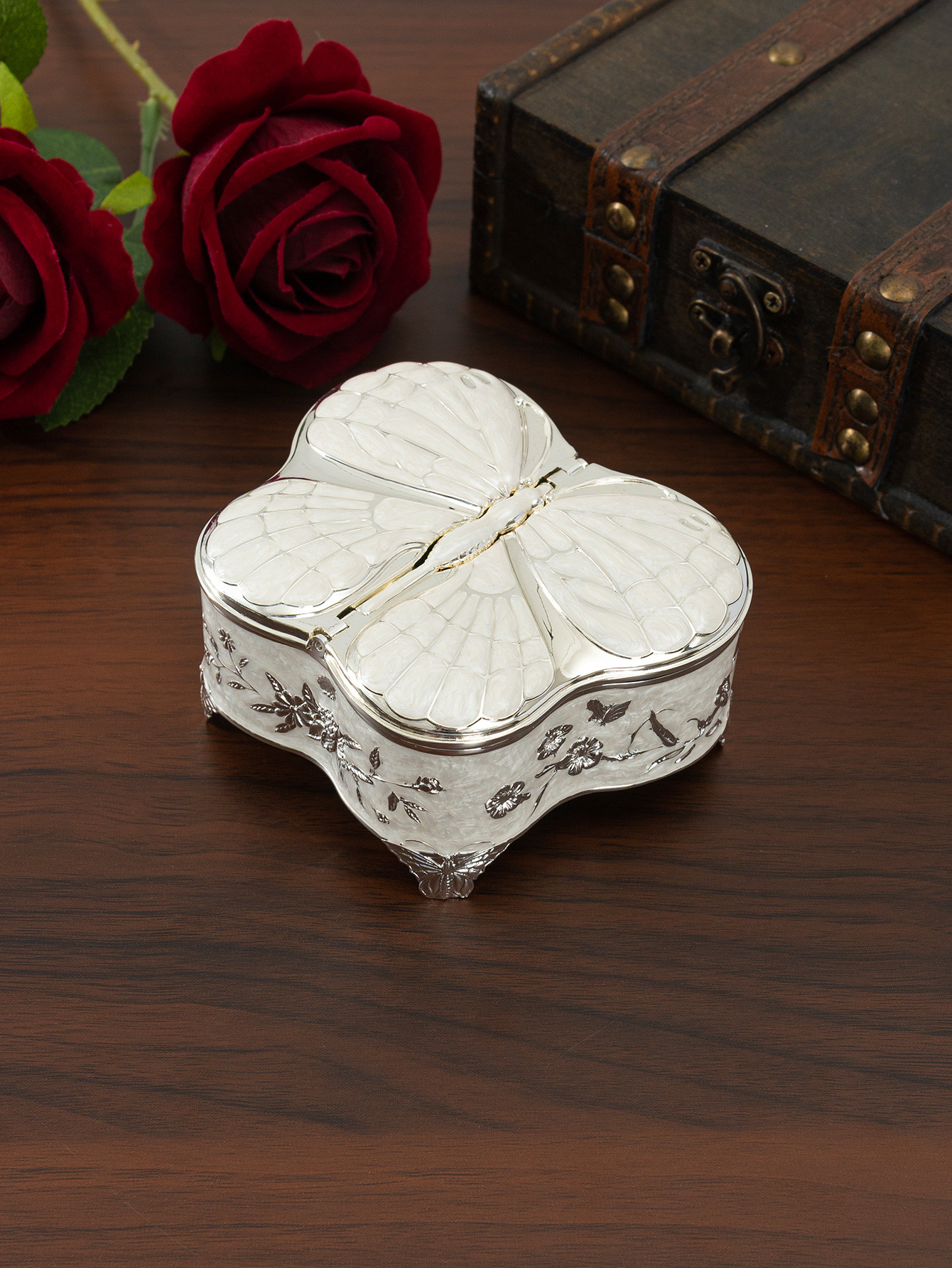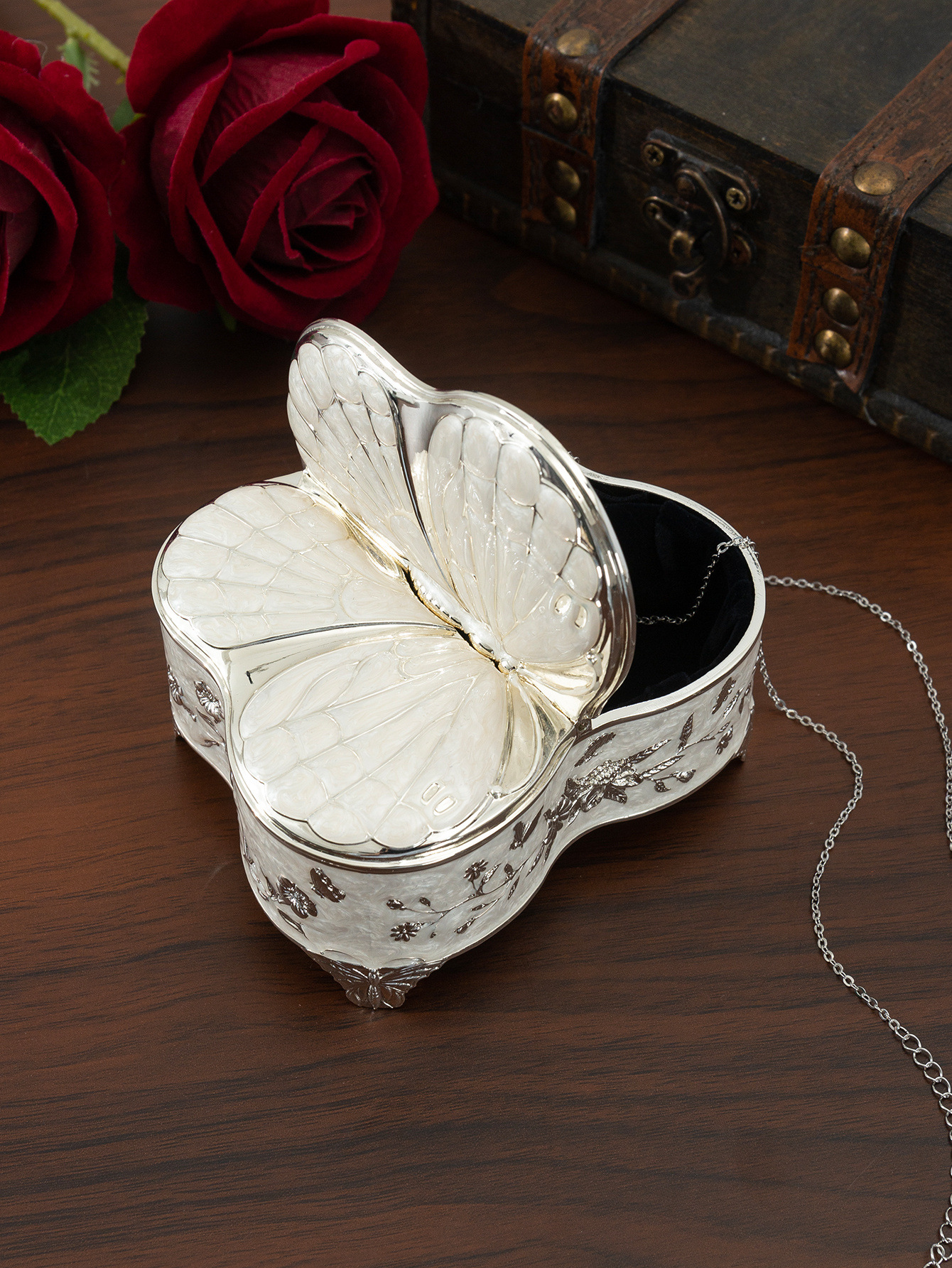 Metal creative butterfly European retro jewelry box small size silver plated hand painted high-end rose jewelry storage box Cotton