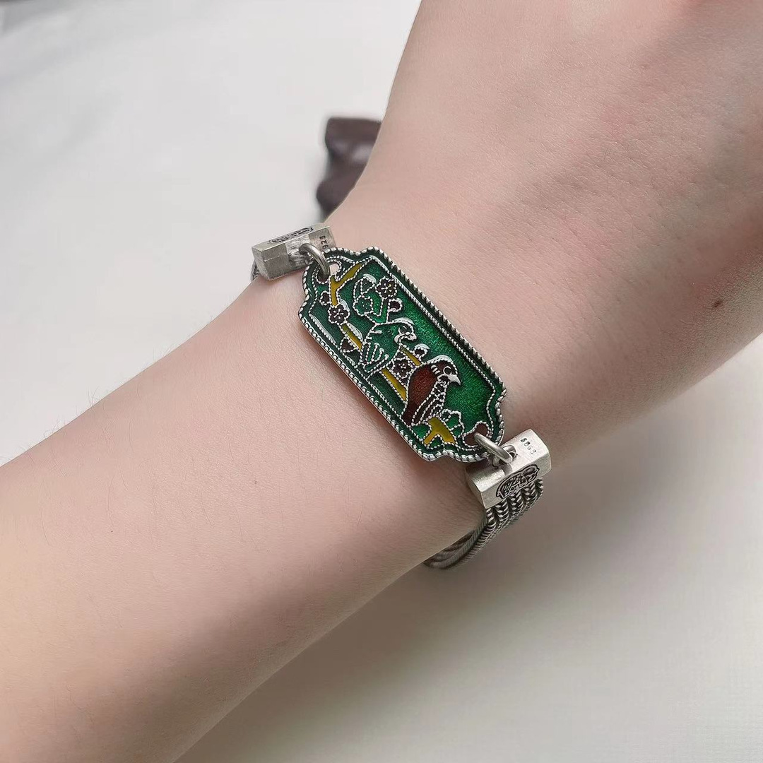 s925 silver Diy handmade enamel palace style sterling silver wedding eyebrow bracelet women's gift for Mother