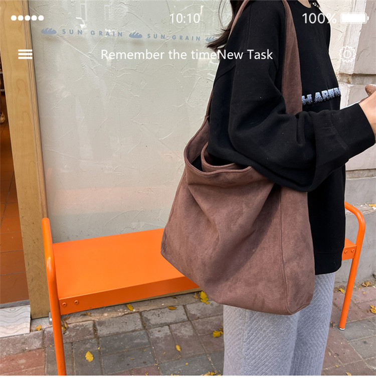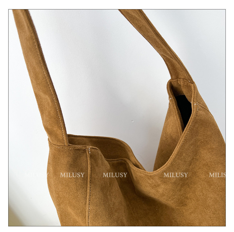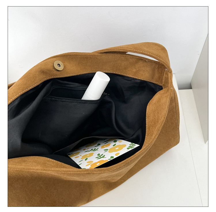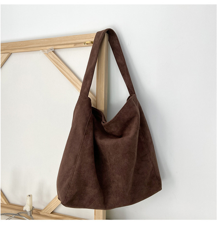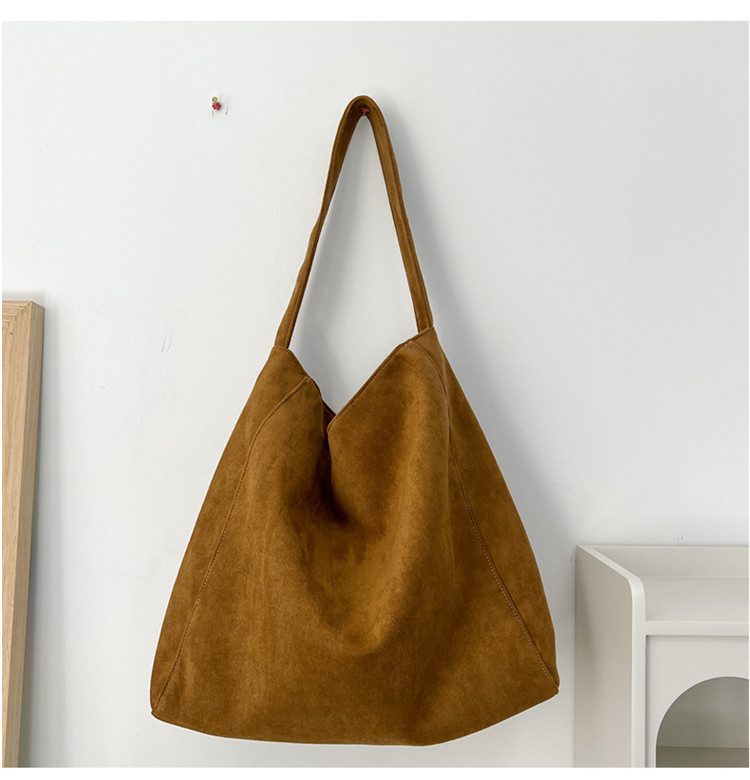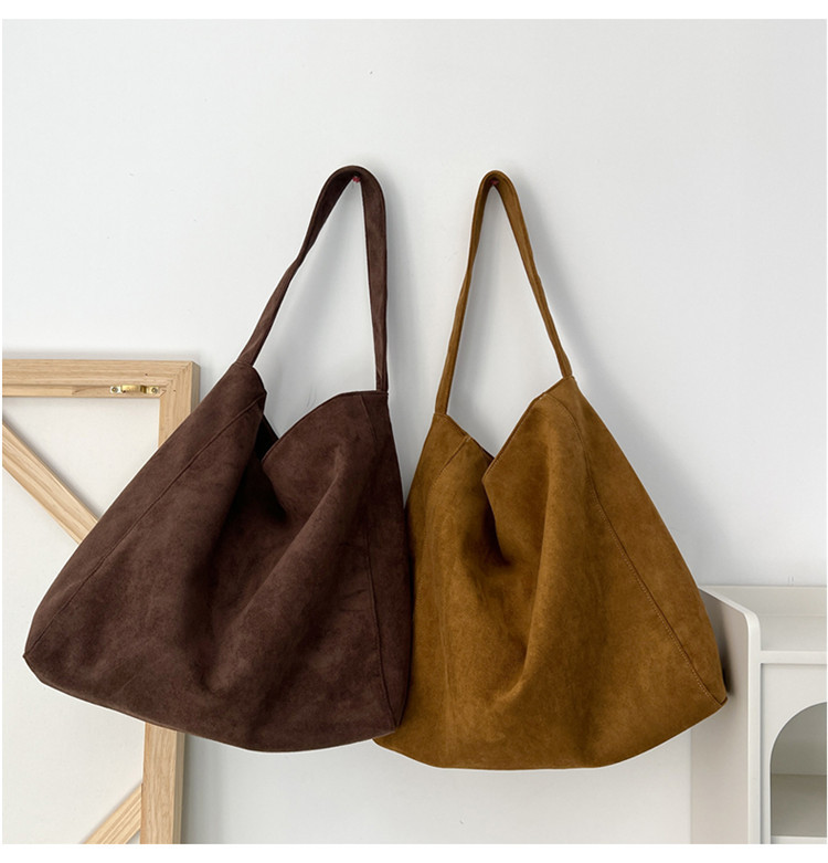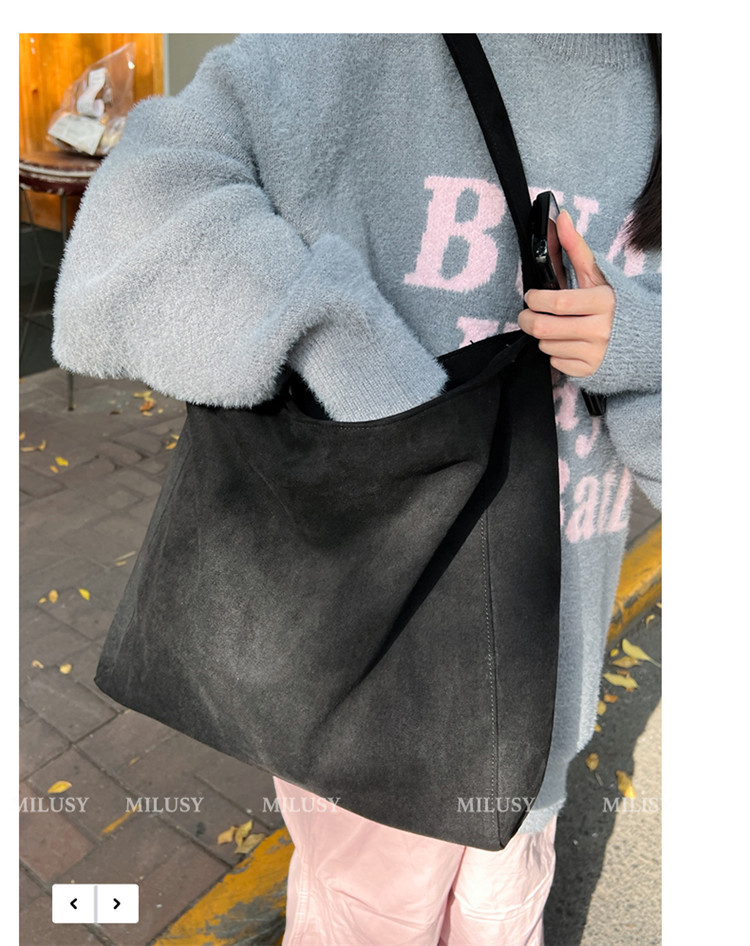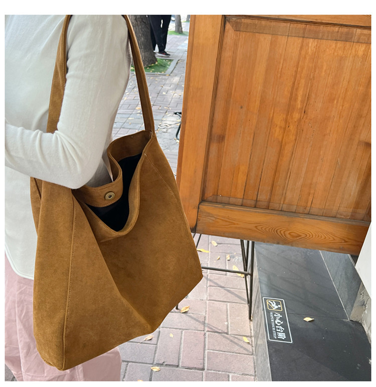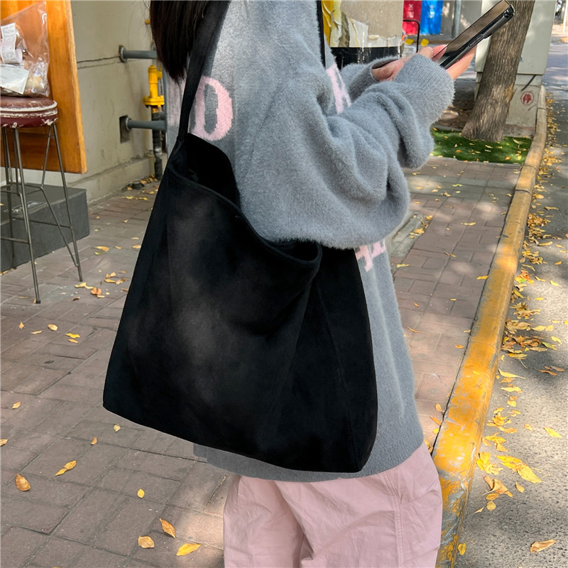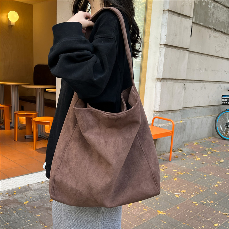 Retro woolen large capacity bag for women 2023 new fashion wide shoulder strap messenger bag artistic lazy style tote bag