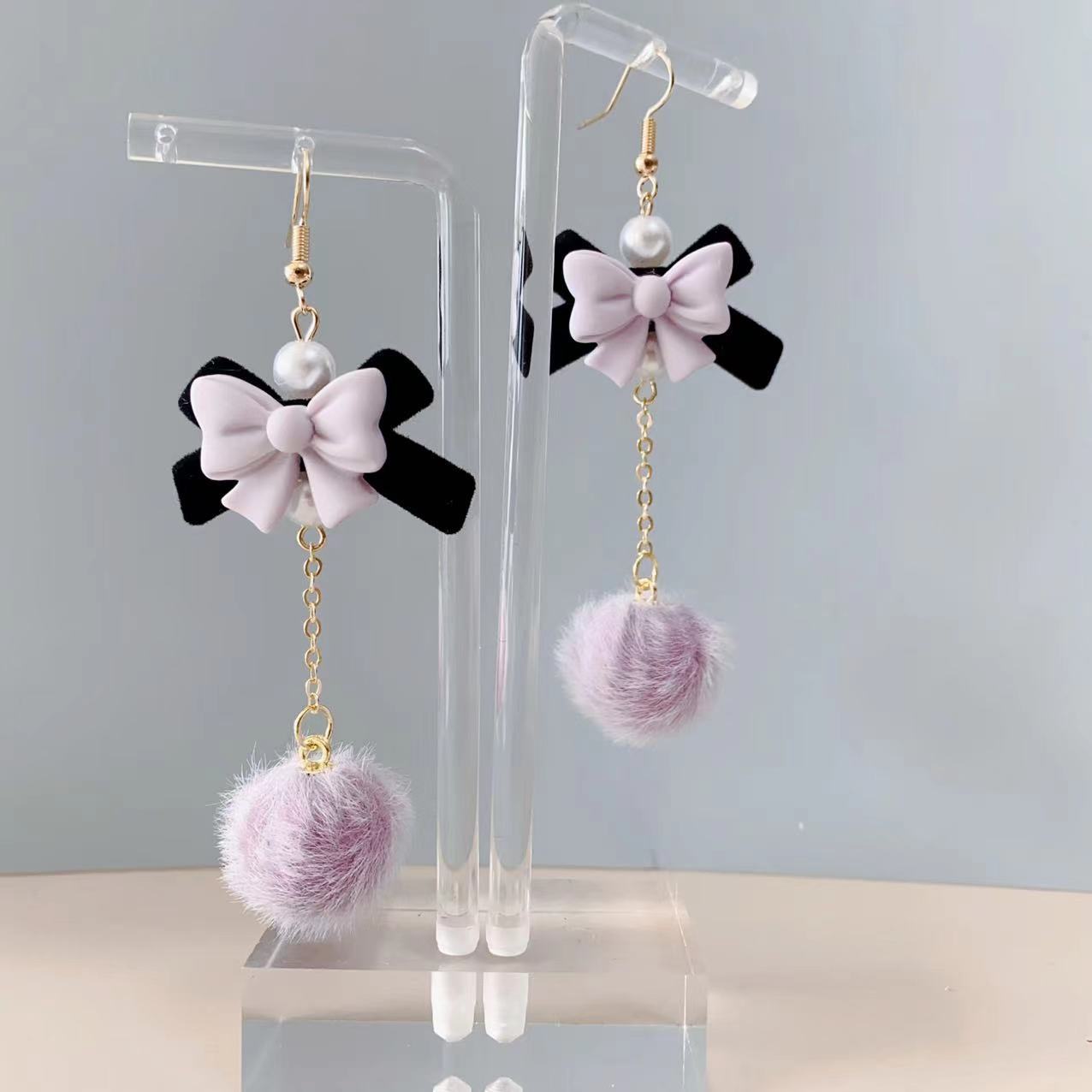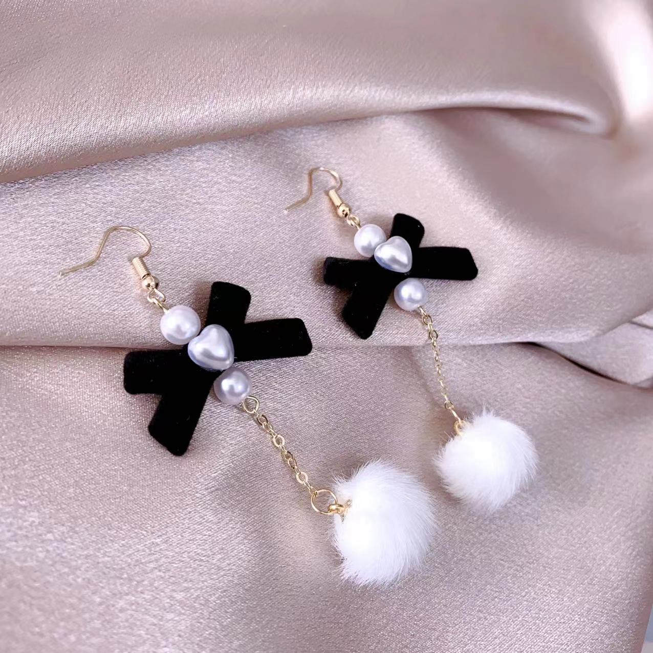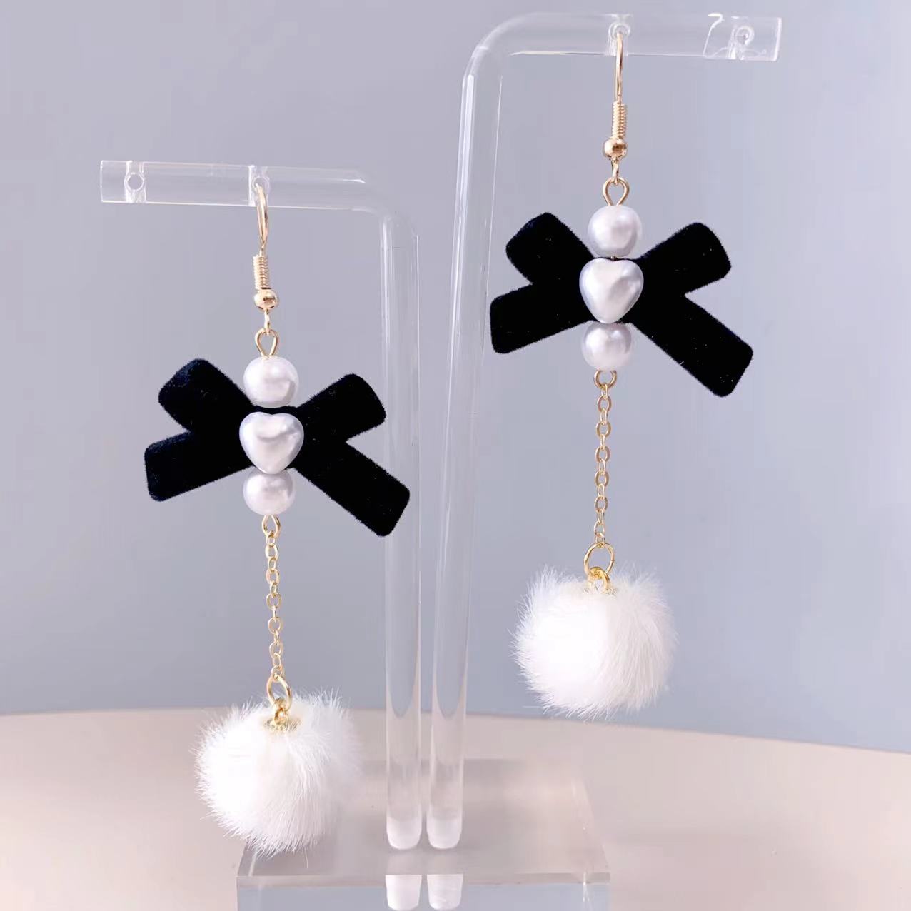 Autumn and Winter new velvet bow fur ball earrings sweet girl cute temperament pearl earrings flocking ear jewelry
