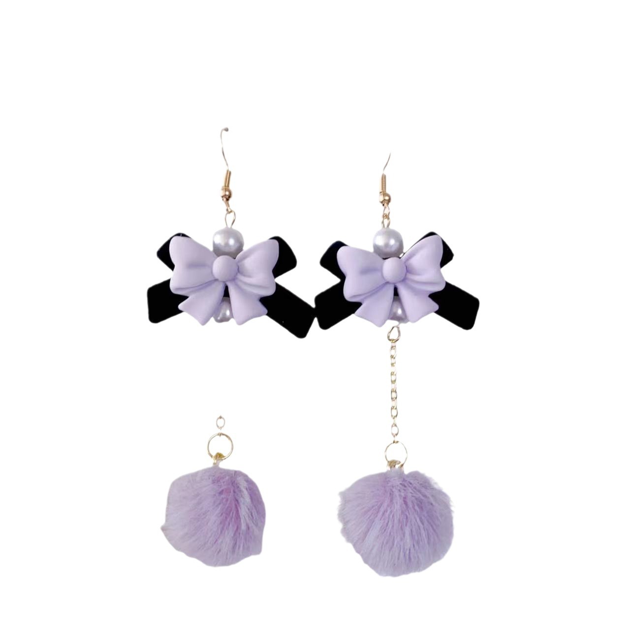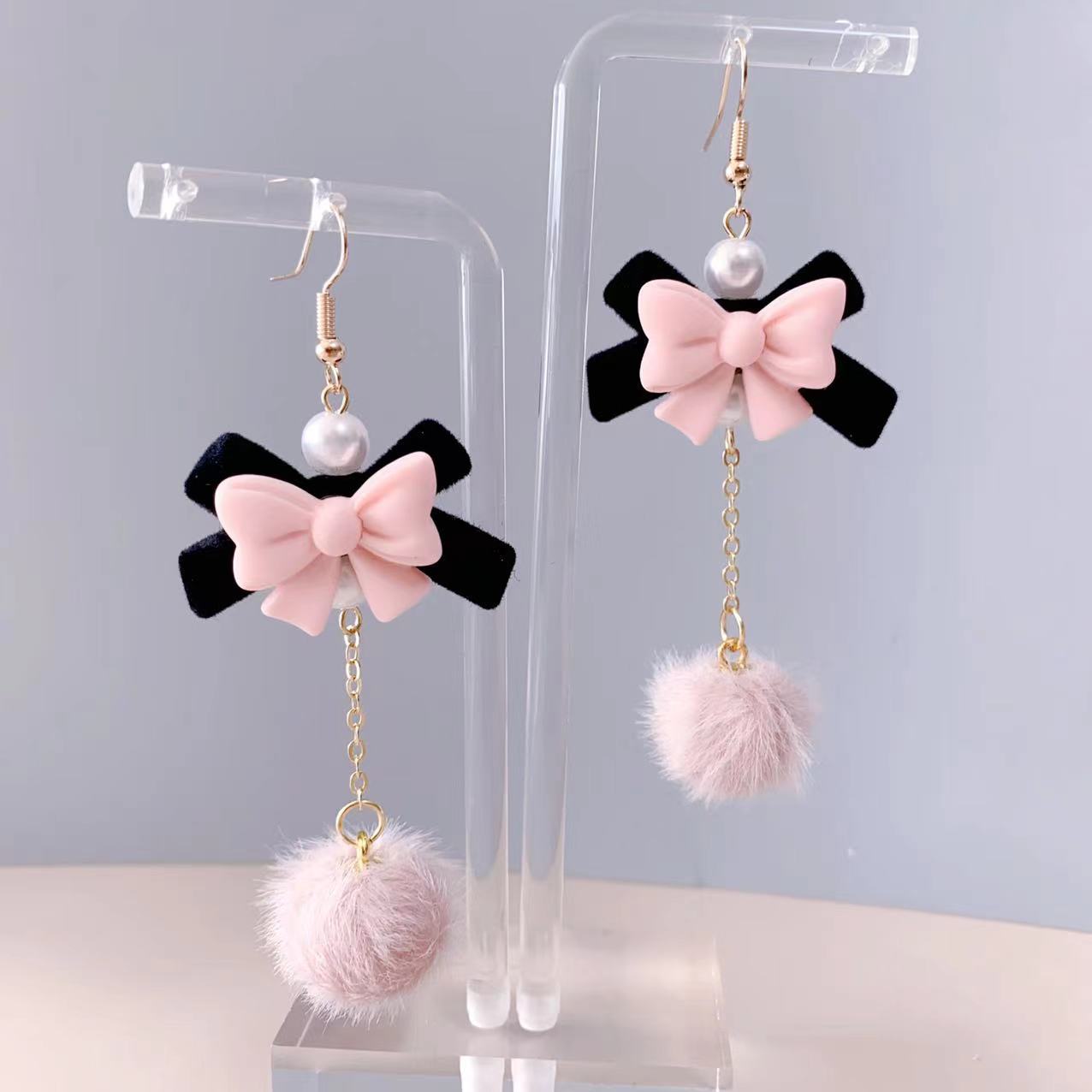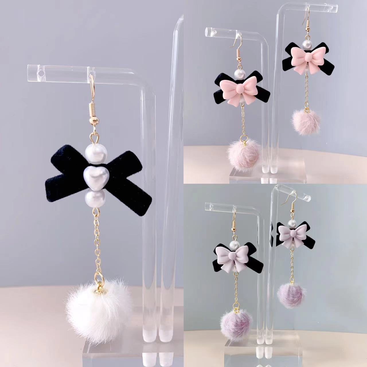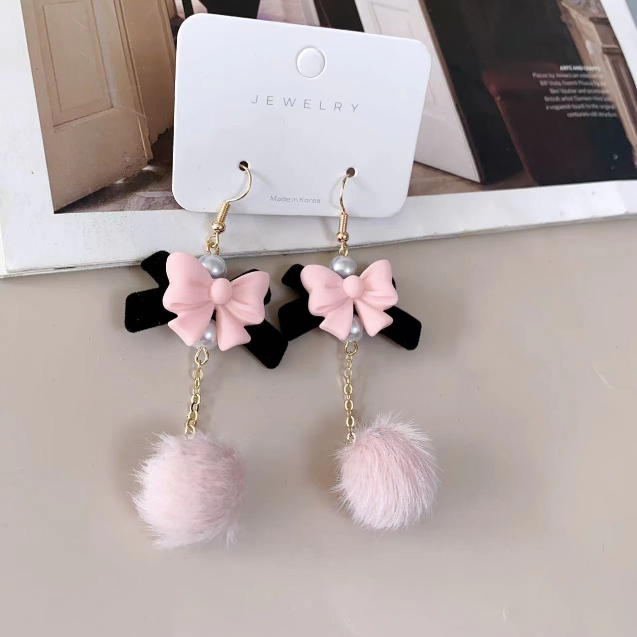 Autumn and Winter new velvet bow fur ball earrings sweet girl cute temperament pearl earrings flocking ear jewelry