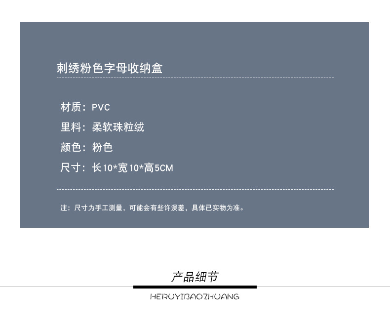 Specifications and models: Single layer pink embroidery-letter R * 10*10*5