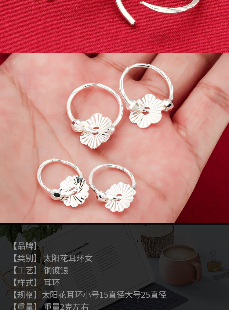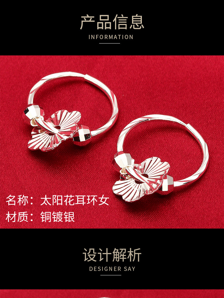 Silver plated women's fashion earrings earrings pure silver plated white earrings flower jewelry sunflower earrings for women