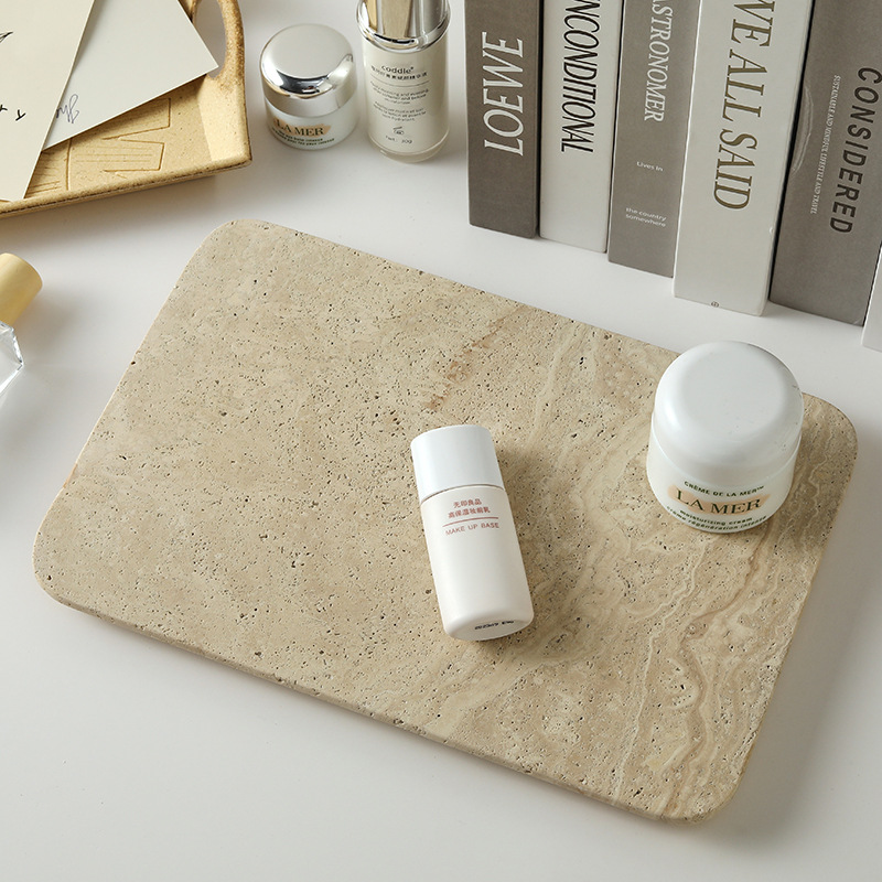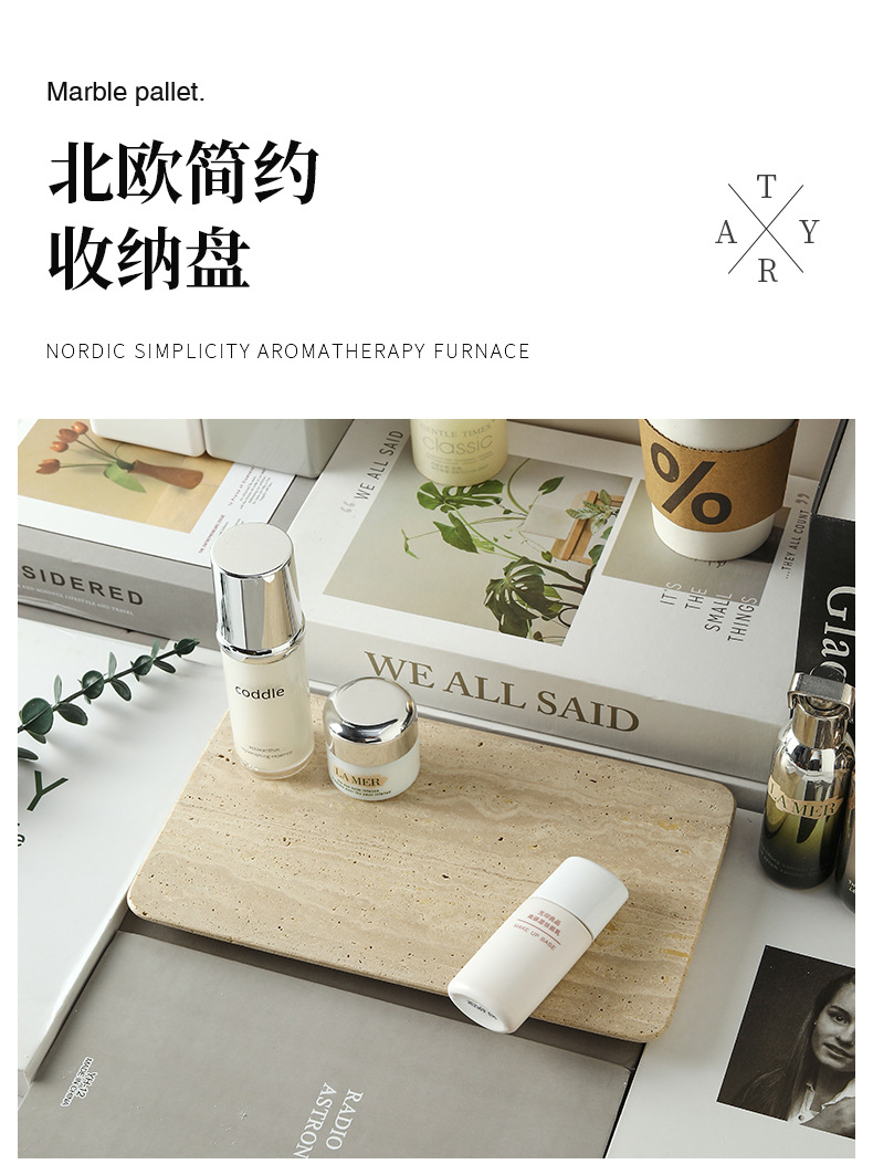 Factory cross-border natural cave stone tray beveled marble tray model room decorative tray aromatherapy jewelry swing plate