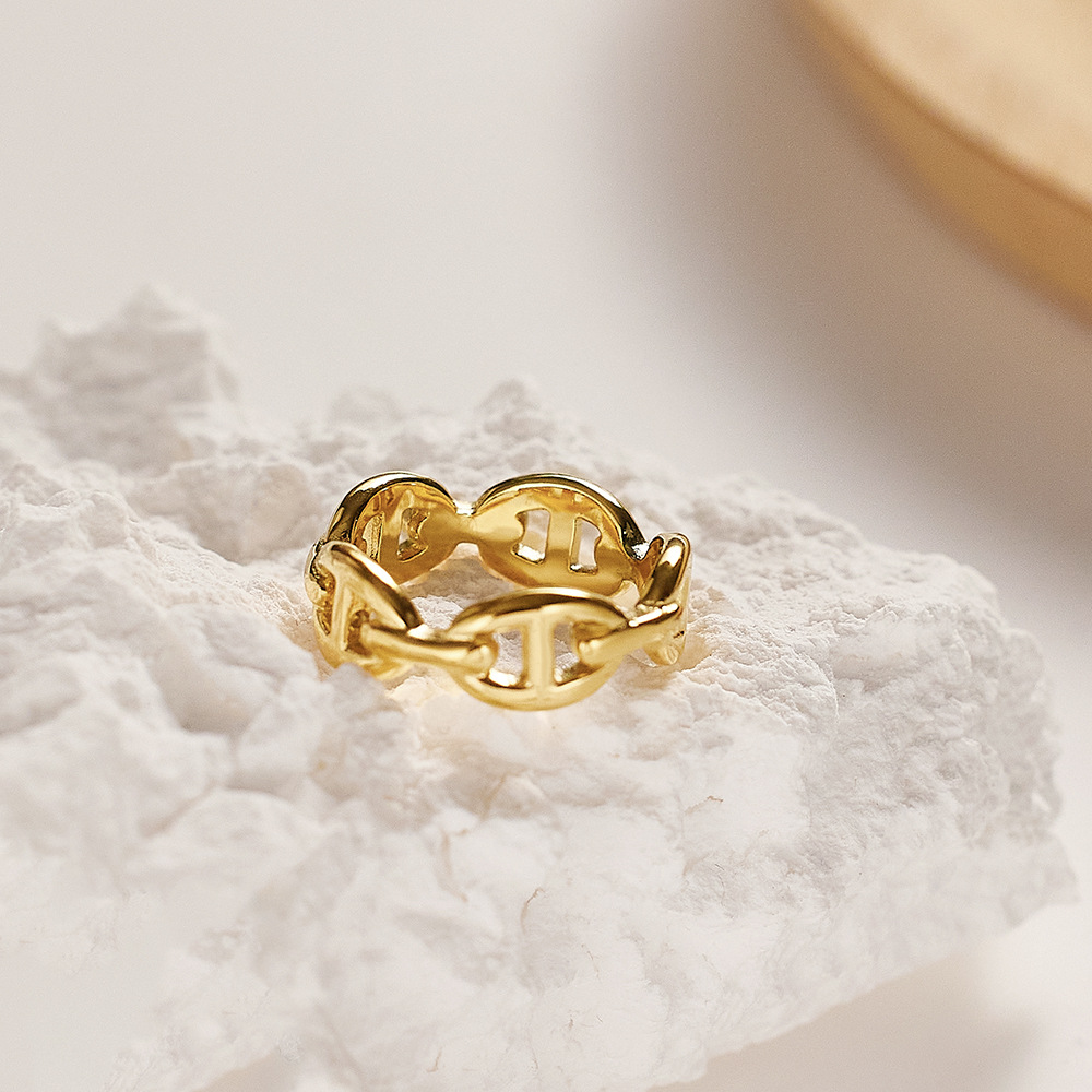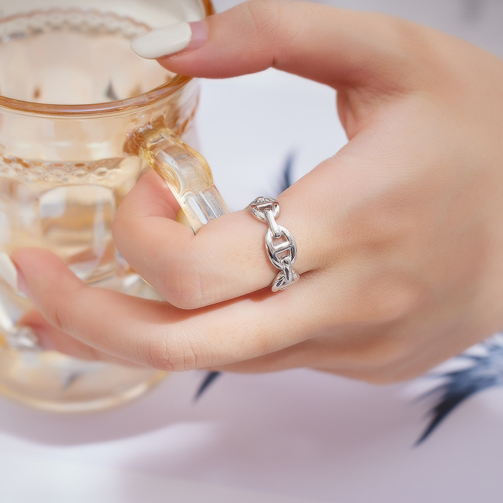 European and American Cross-Border Personalized Trendy Rings Internet Celebrity Same Style Chain Ring Non-Fading Pig Nose Titanium Steel Ring Couple
