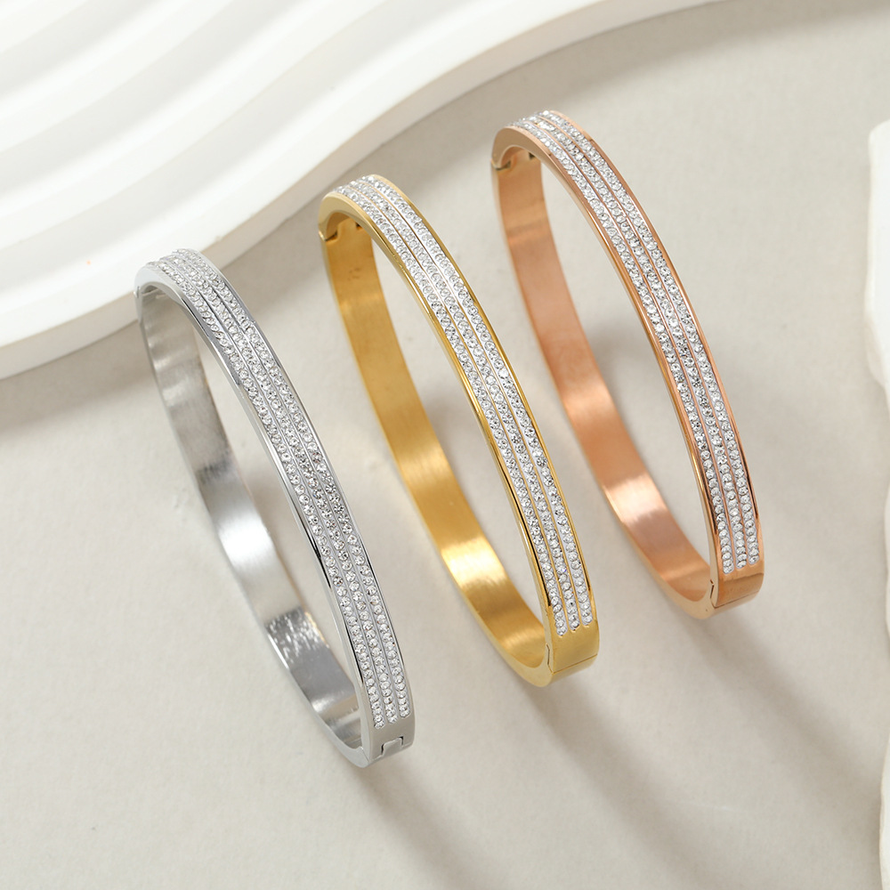 Cross-border Elegant Starry titanium steel bracelet advanced three-row mud Diamond Diamond-embedded O-type buckle bracelet stainless steel jewelry