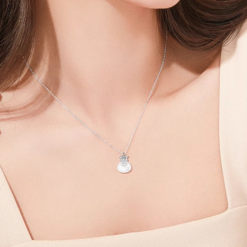Color: White chalcedony lucky bag necklace (0-shaped chain white gold)