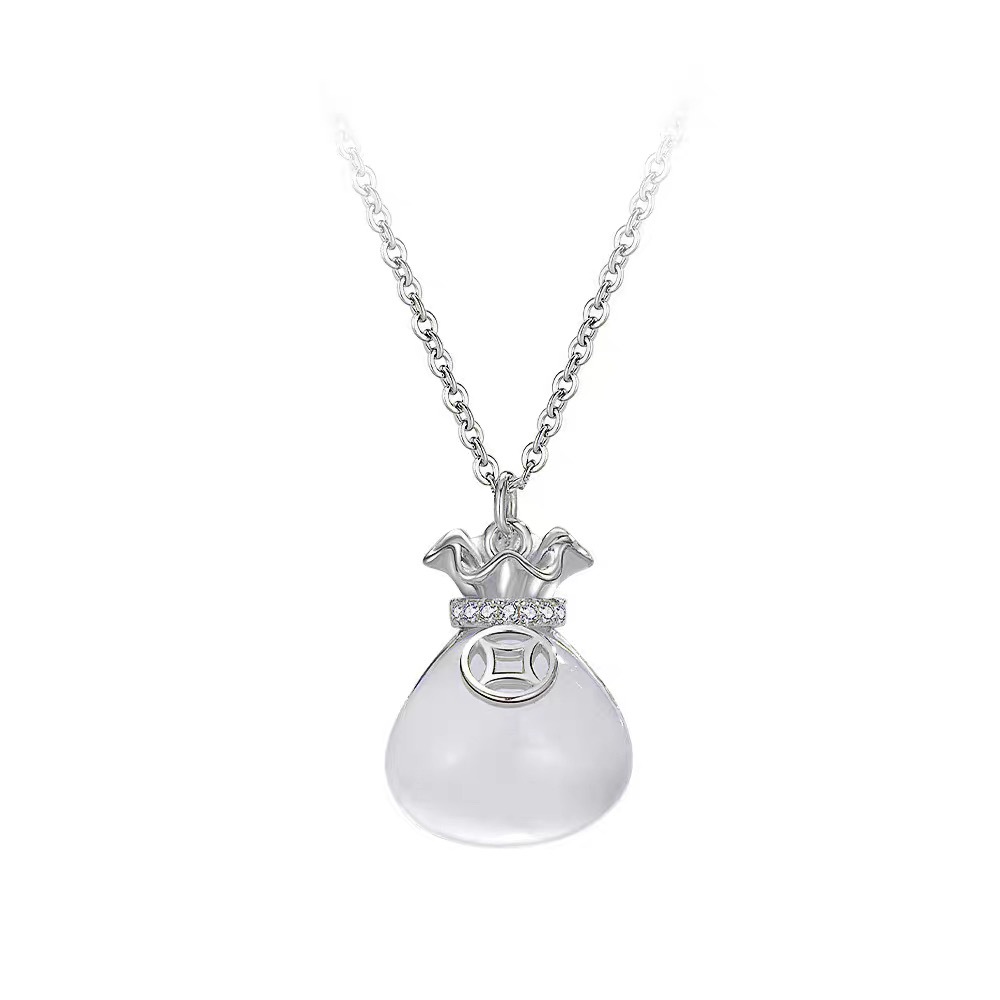 Color: White chalcedony lucky bag necklace (white gold 0.8 box chain)