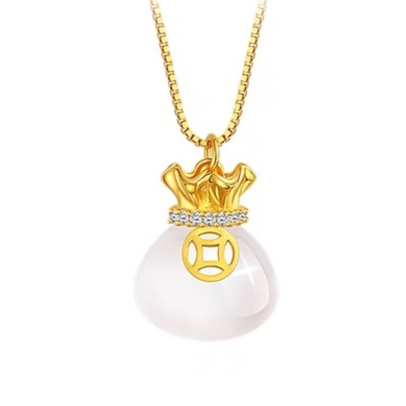 Color: White chalcedony lucky bag necklace (gold 0.8 box chain)