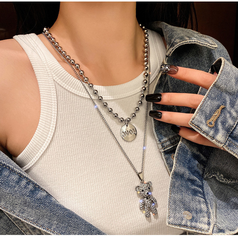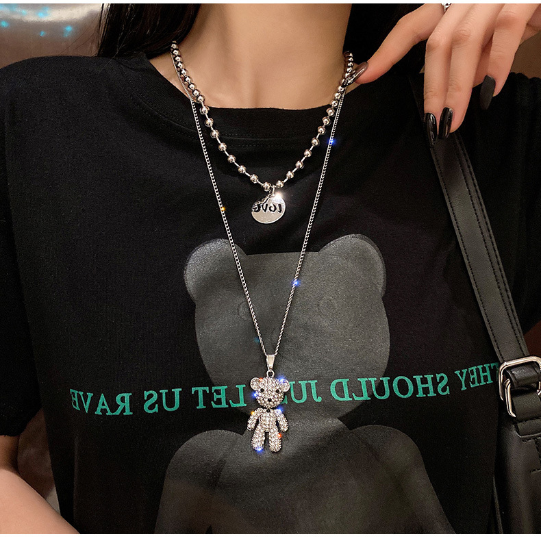 Color: 0541 Diamond Bear titanium steel necklace can be worn separately
