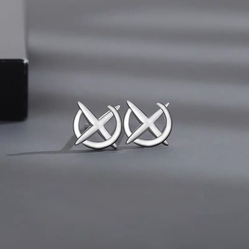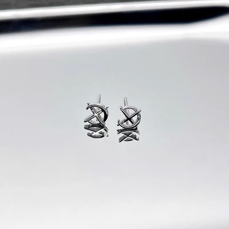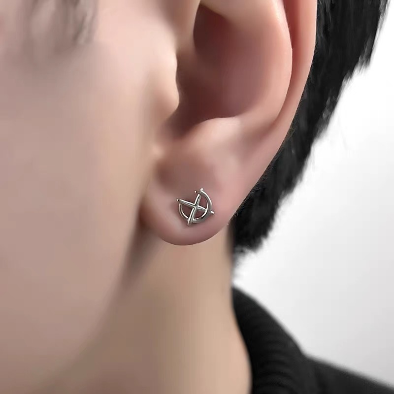 Cross star stud earrings men's trendy personality simple design sense niche men's stud earrings High sense Ruan handsome Cross