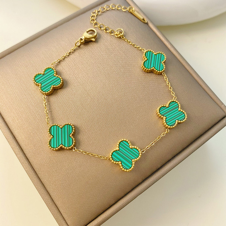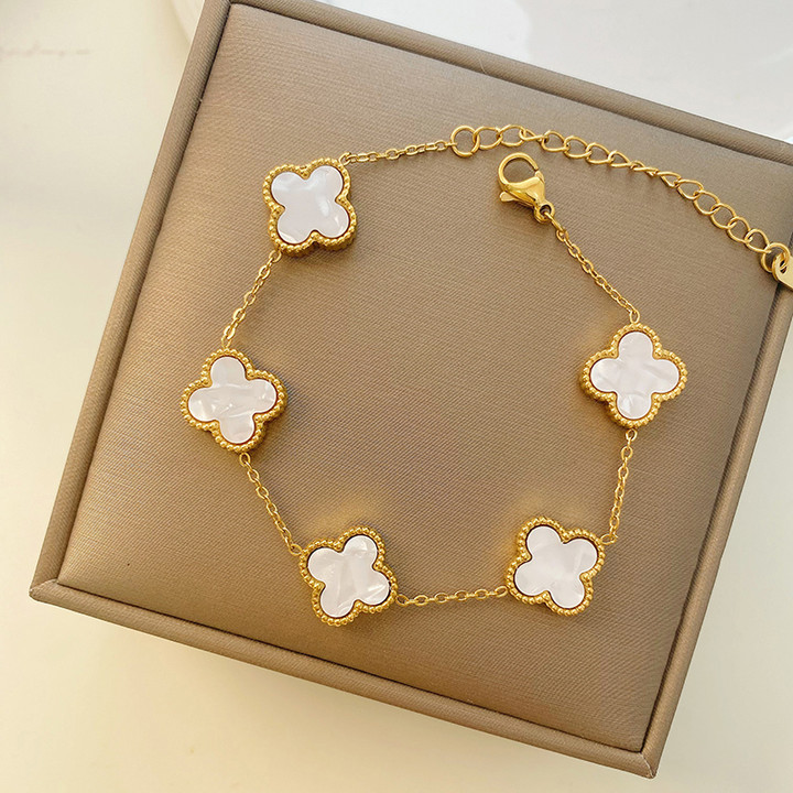 High-End Exquisite Four-Leaf Clover Titanium Steel Bracelet for Women 18K Gold Niche Accessible Luxury Bracelet Stainless Steel Popular Design