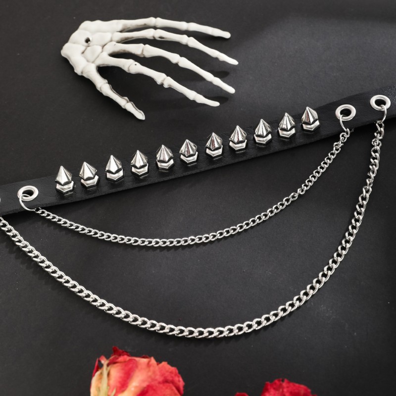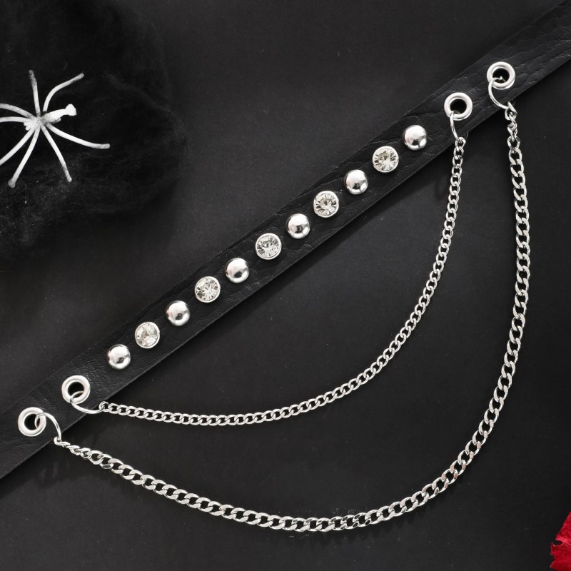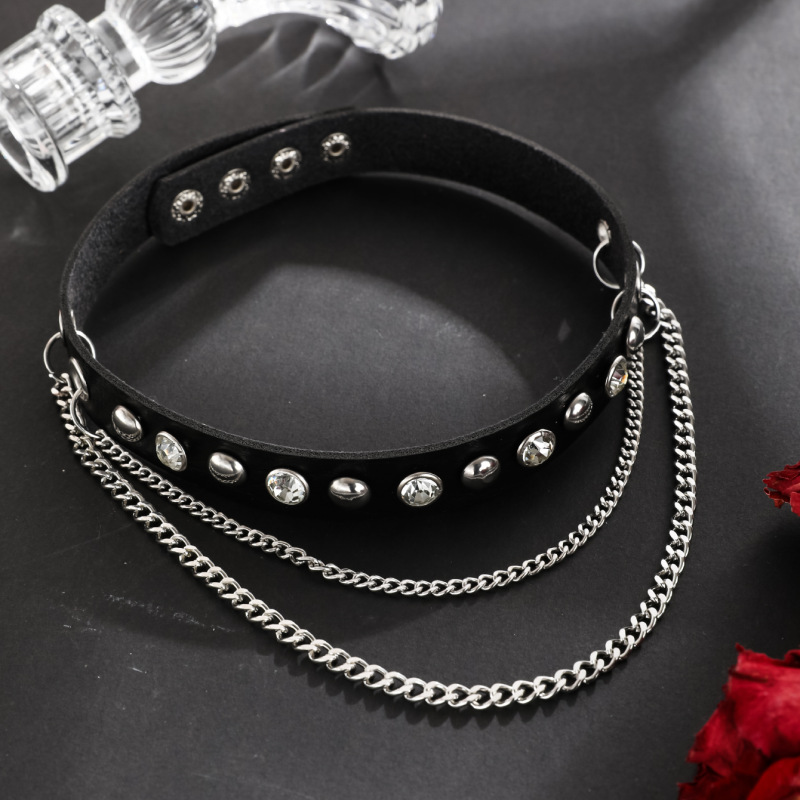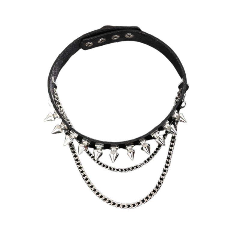 European and American cross-border personalized punk hip hop rock Gothic style rivet leather necklace women's fashion sexy hot girl necklace