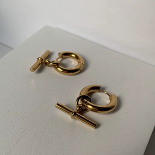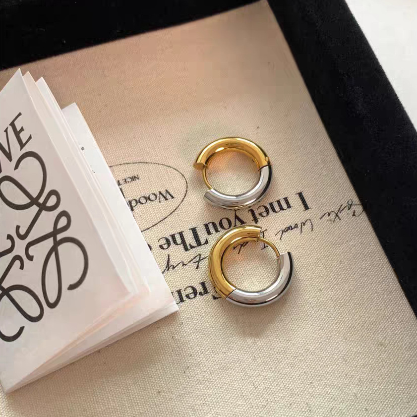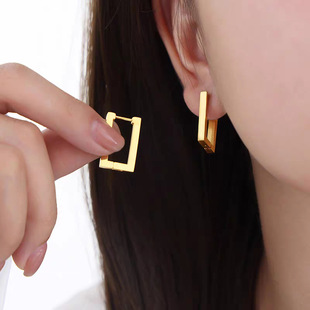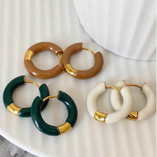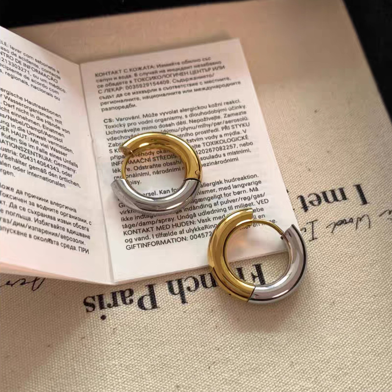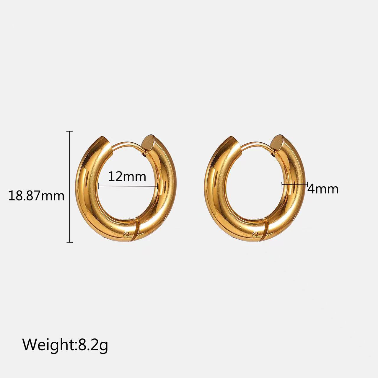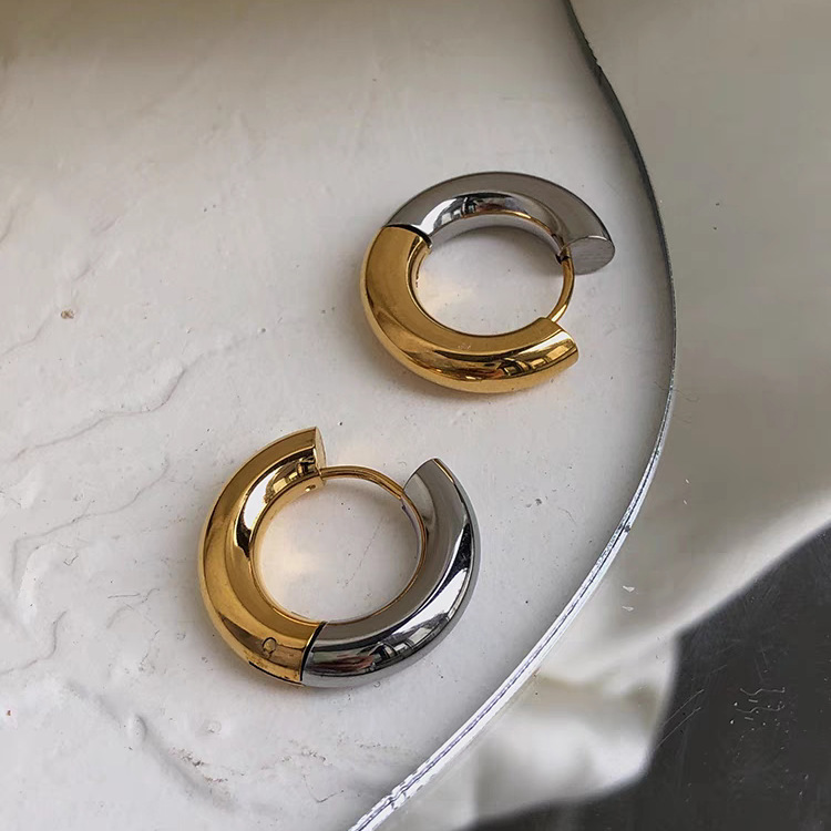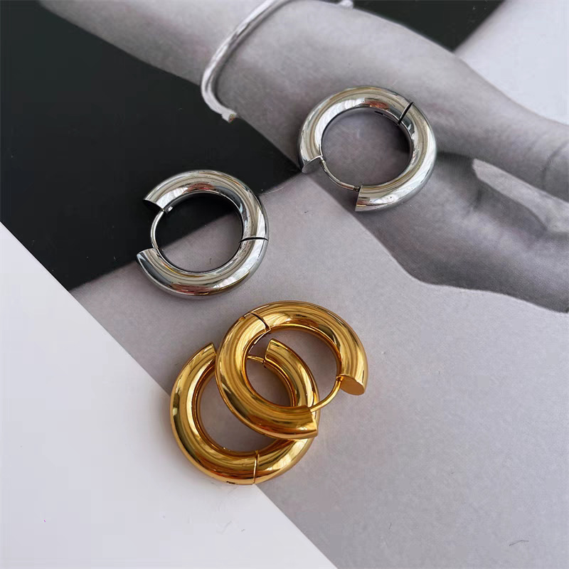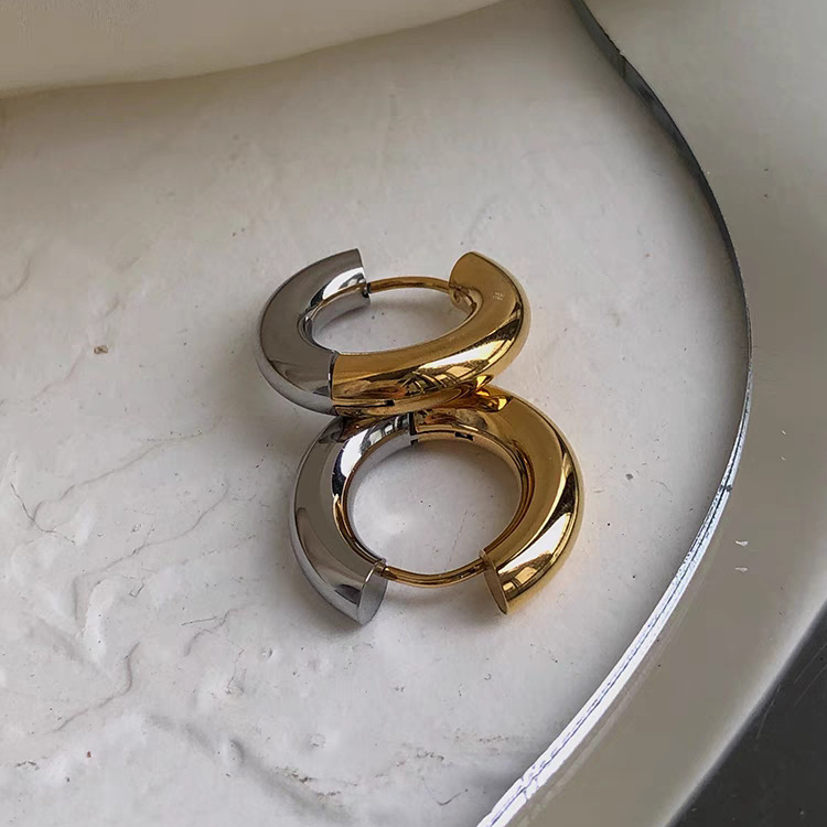 European and American INS style 4mm thick simple 18k gold plated stainless steel circle earrings simple gold plated men's and women's ear buckle