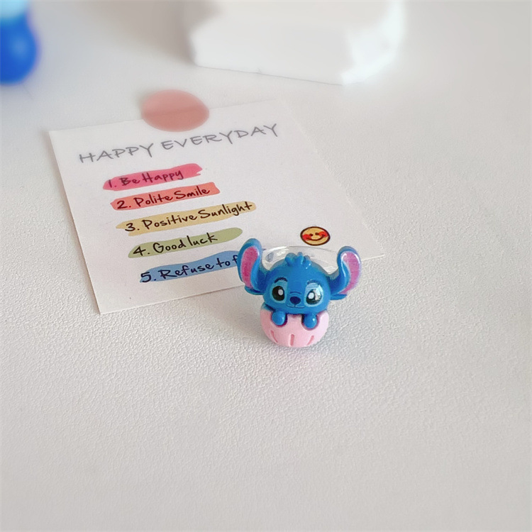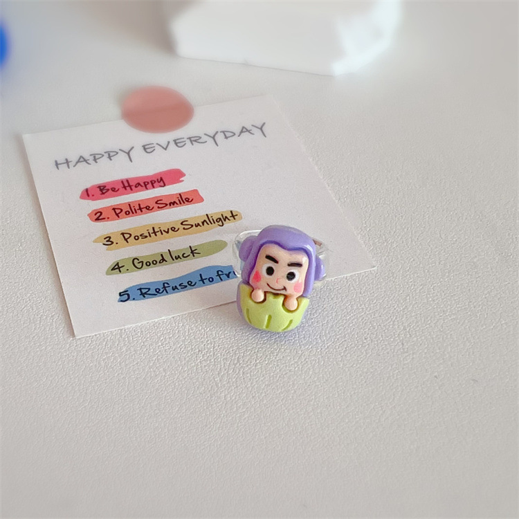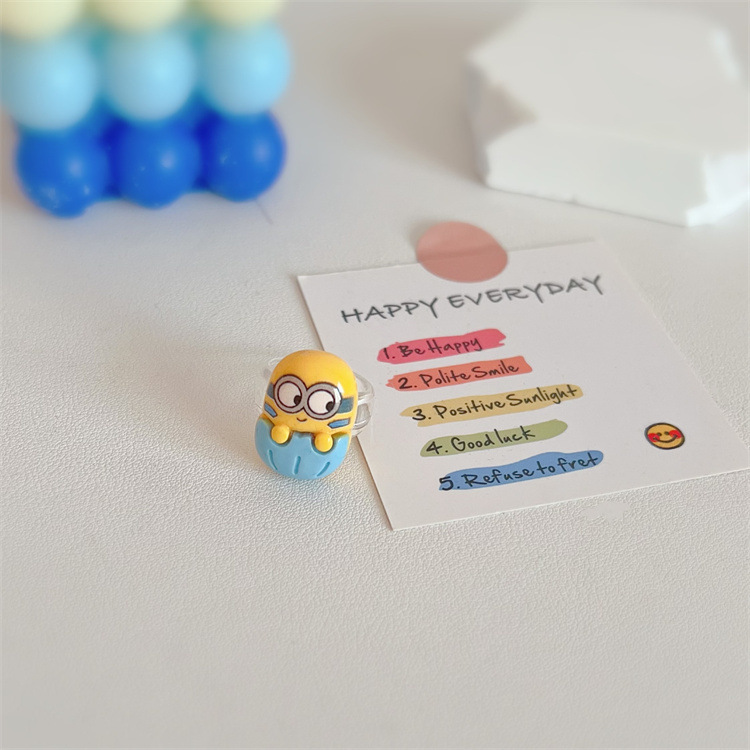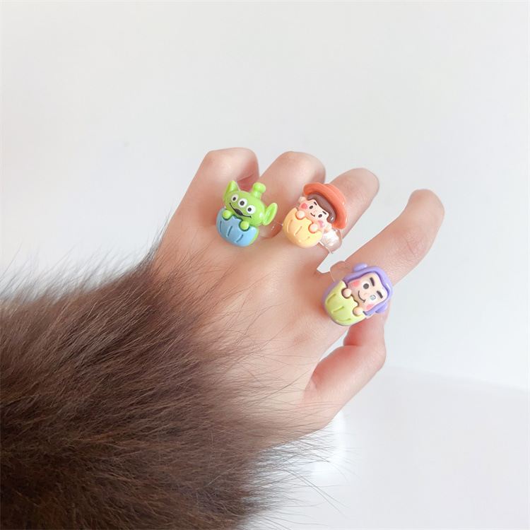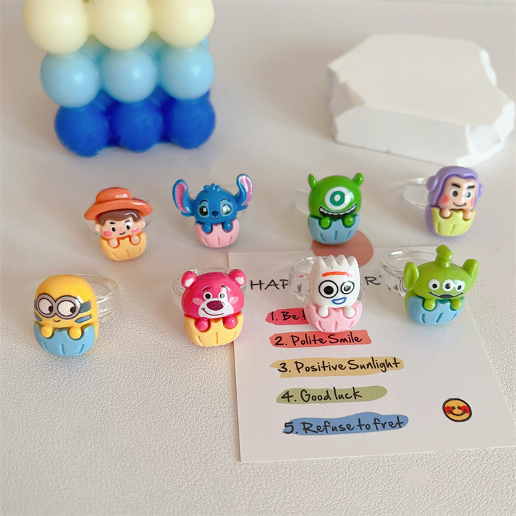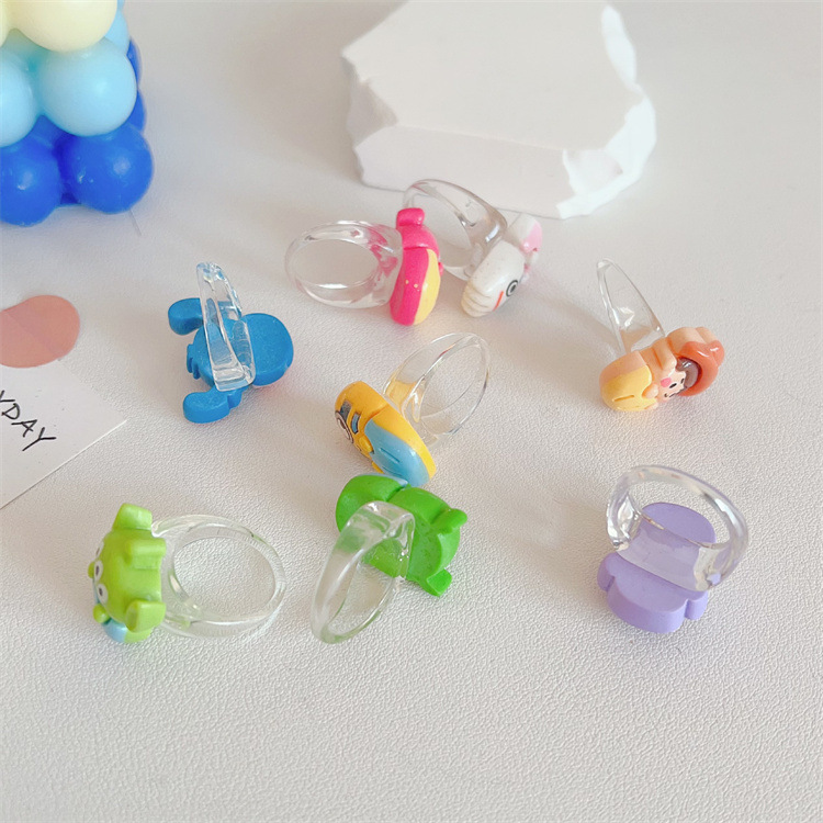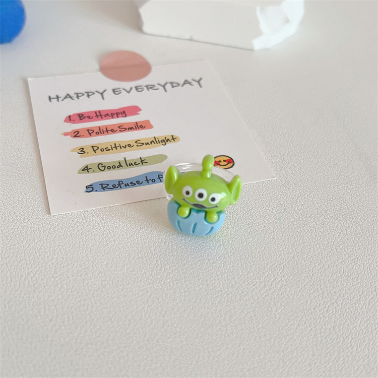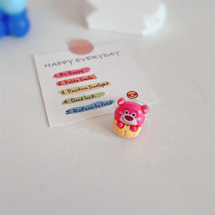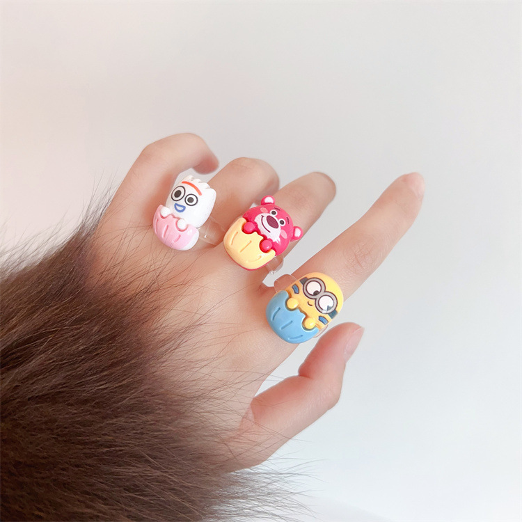 New sweet cool cute cartoon funny funny design Hu Di three-eye monster strawberry bear ring resin ring for women