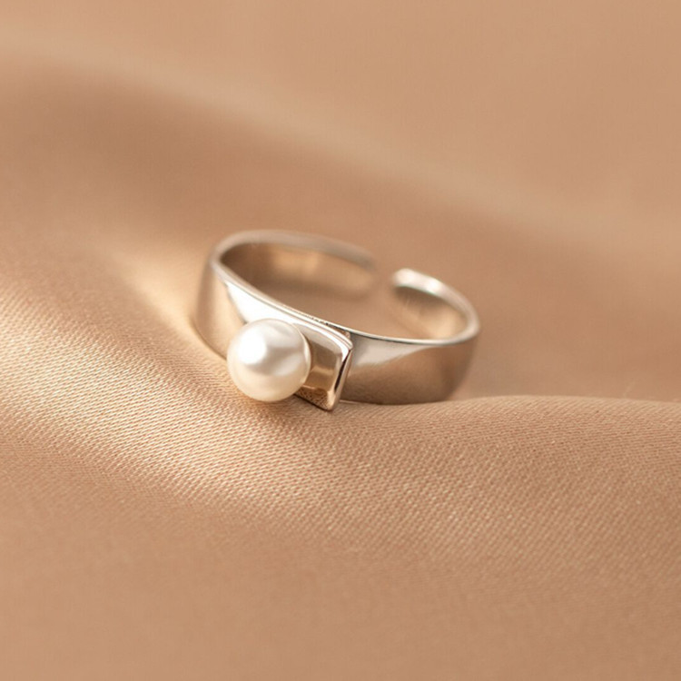 Korean Style Simple Glossy Pearl Ring Women's Elegant Literary Accessible Luxury High-end ins Open Index Finger Ring