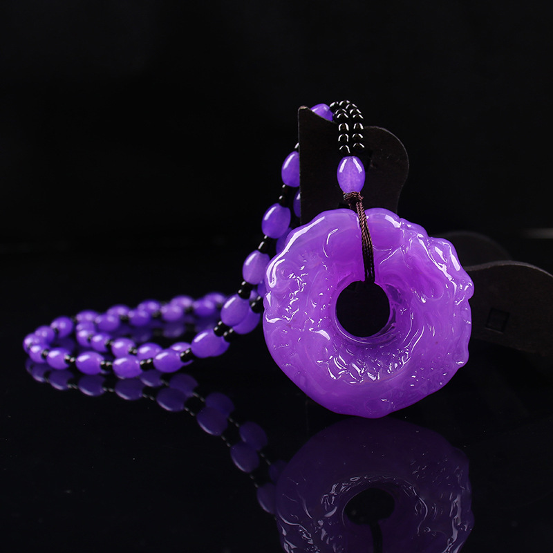Imitation beeswax purple necklace-dragon pattern safety buckle