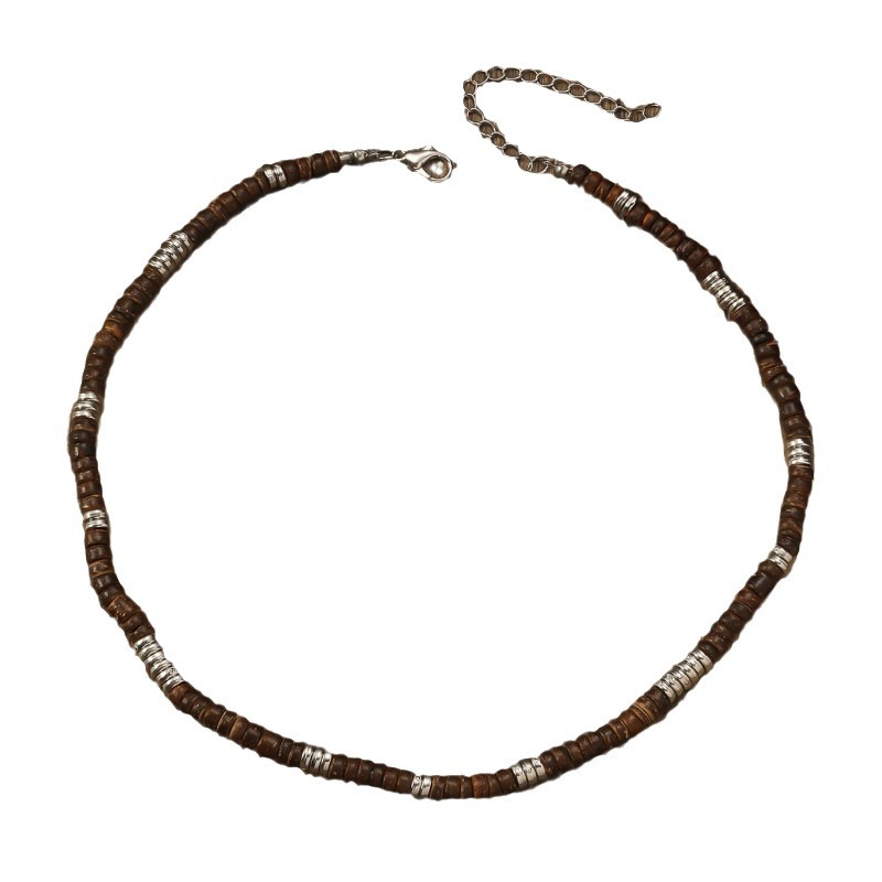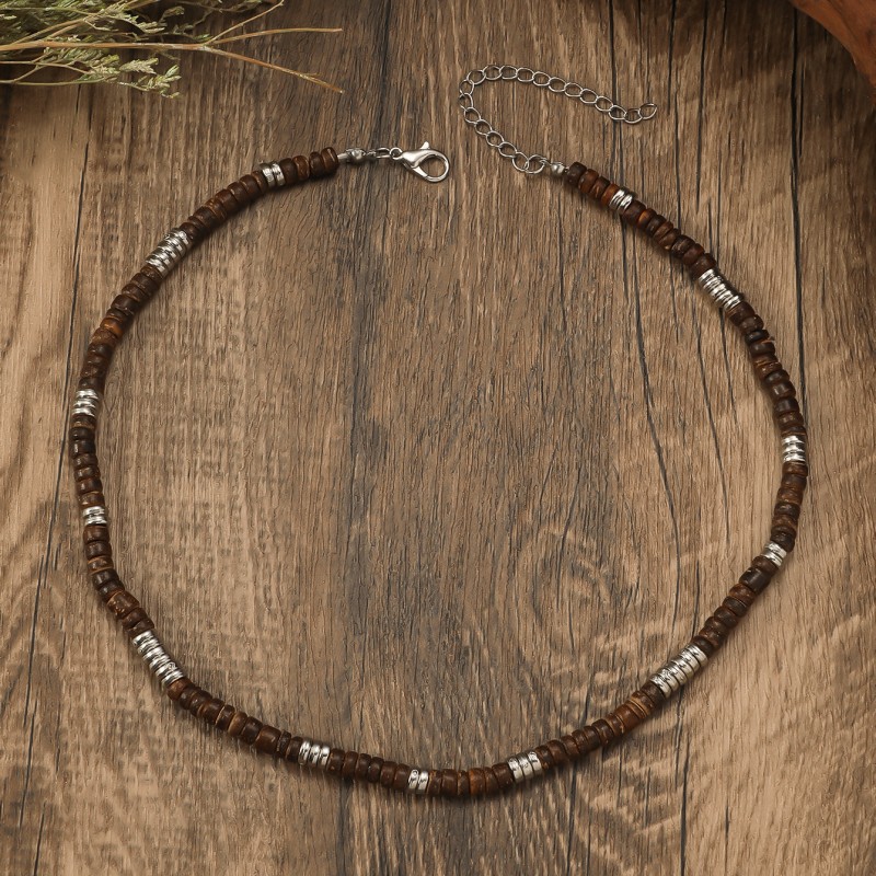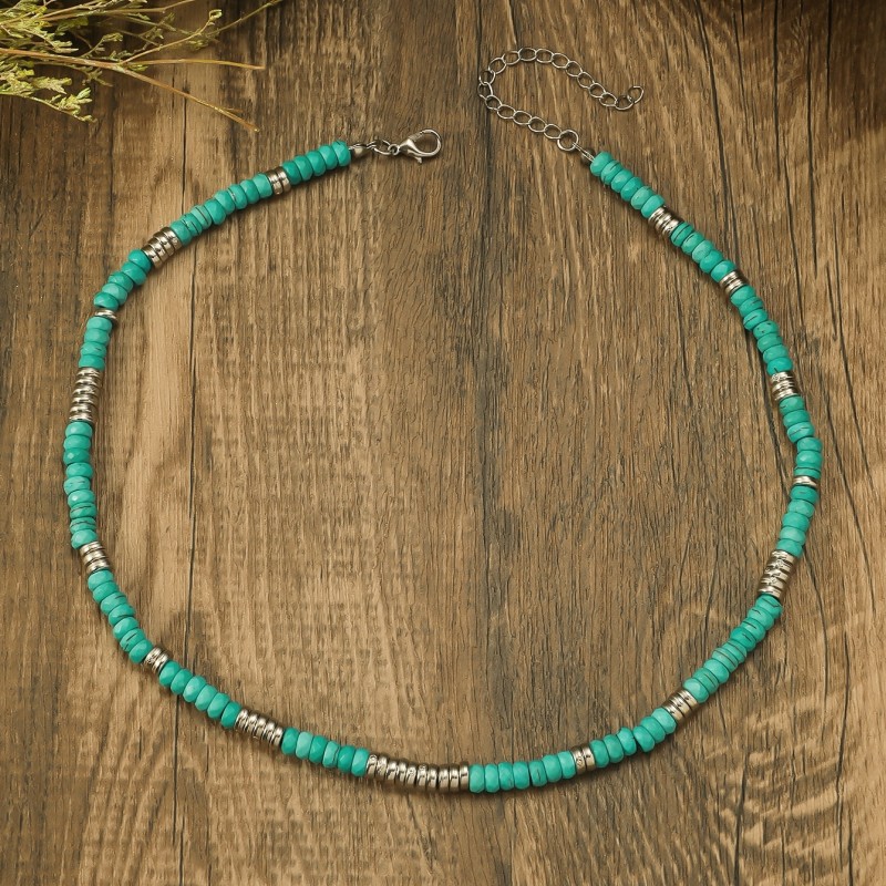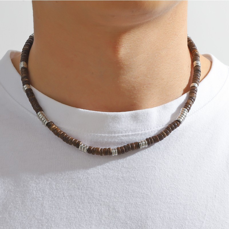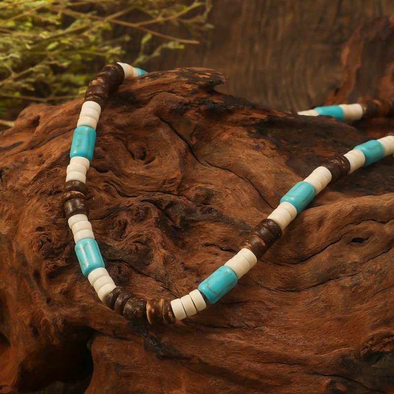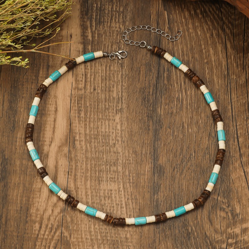 European and American cross-border bohemian retro turquoise wooden beads stitching necklace men's personalized niche handmade beaded necklace