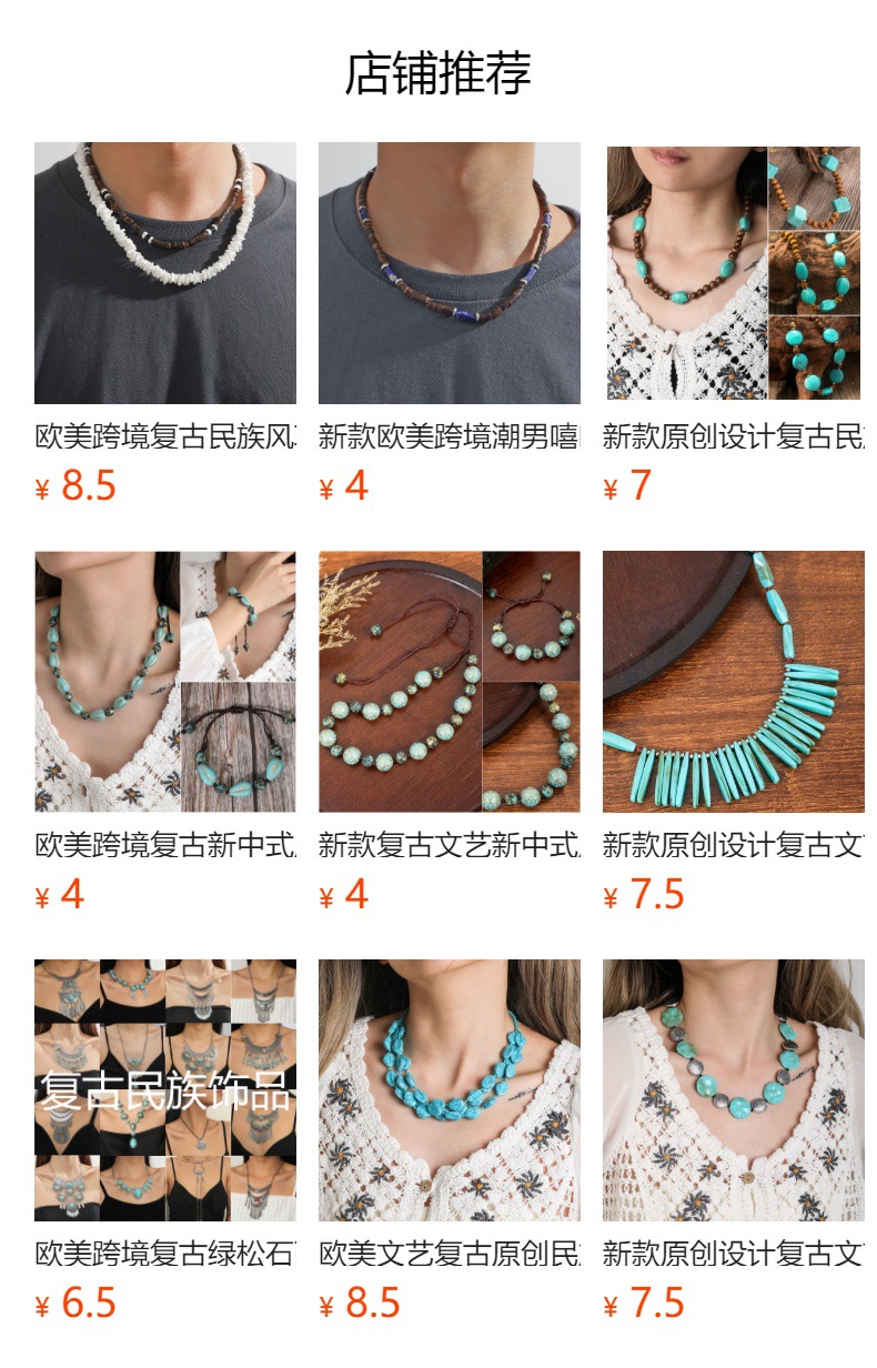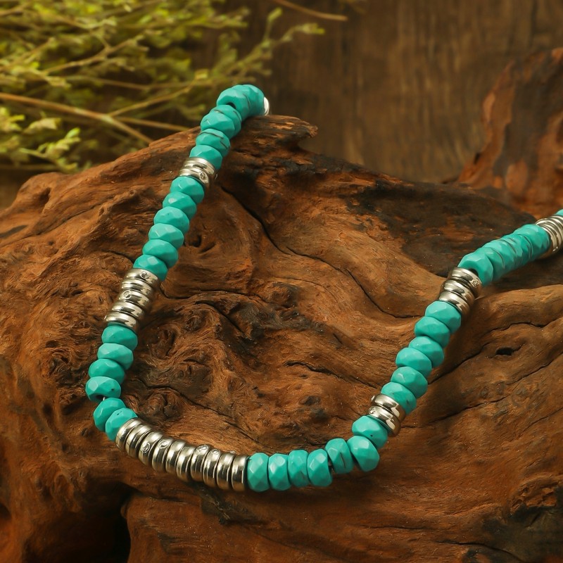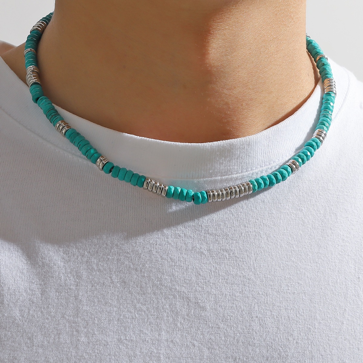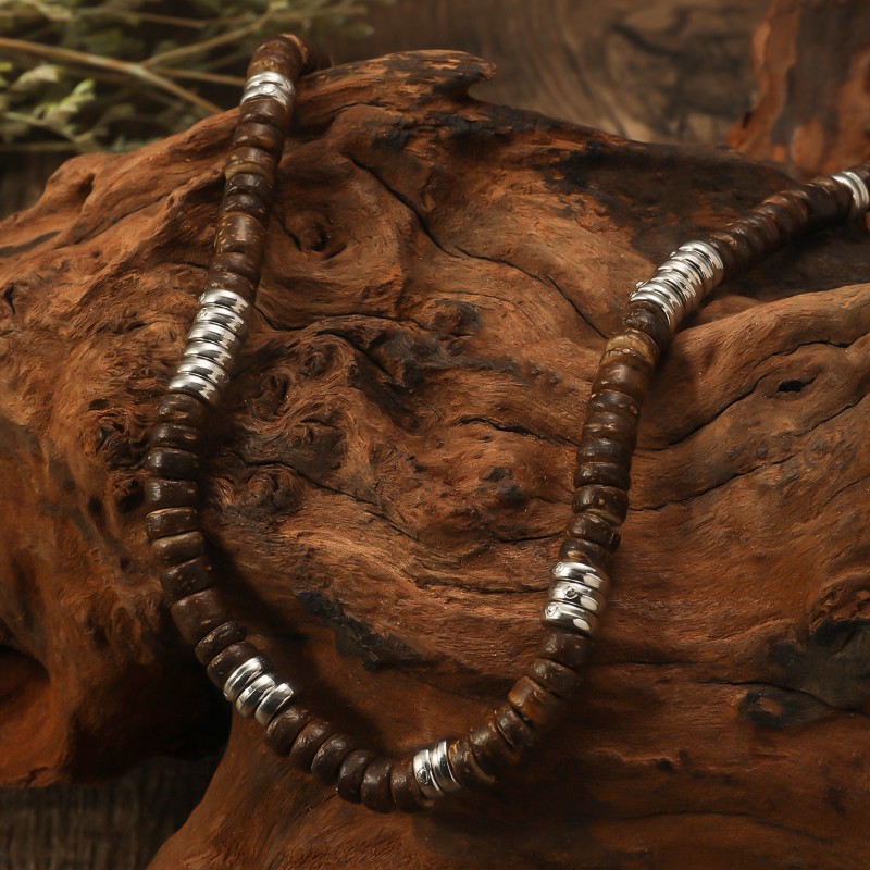 European and American cross-border bohemian retro turquoise wooden beads stitching necklace men's personalized niche handmade beaded necklace
