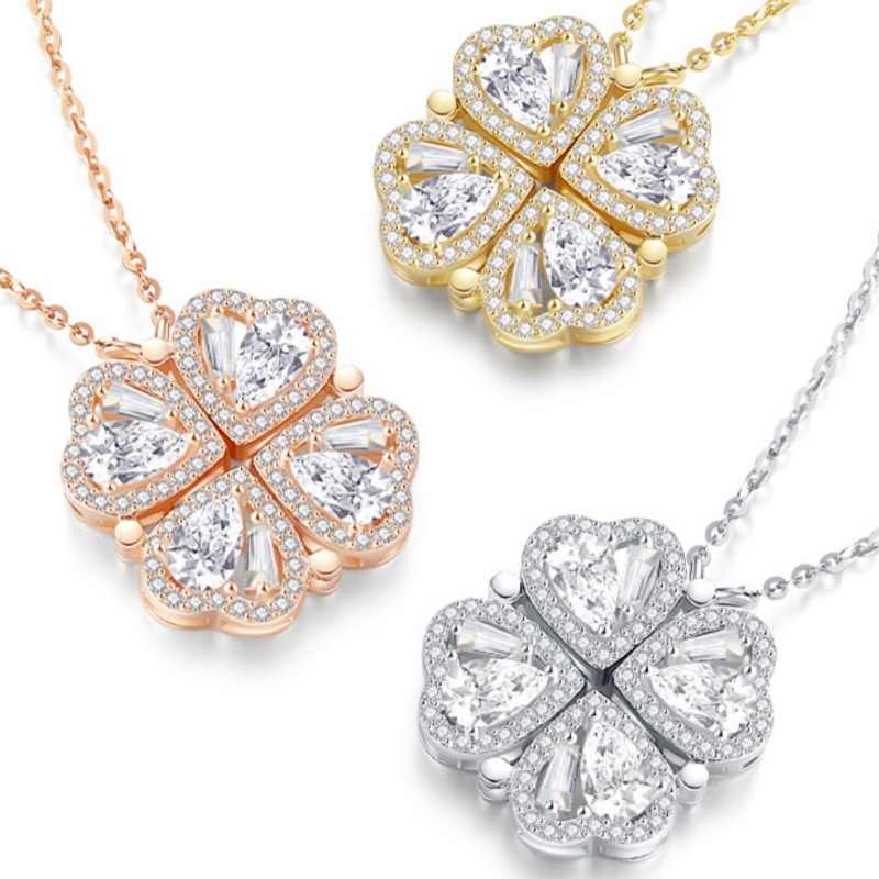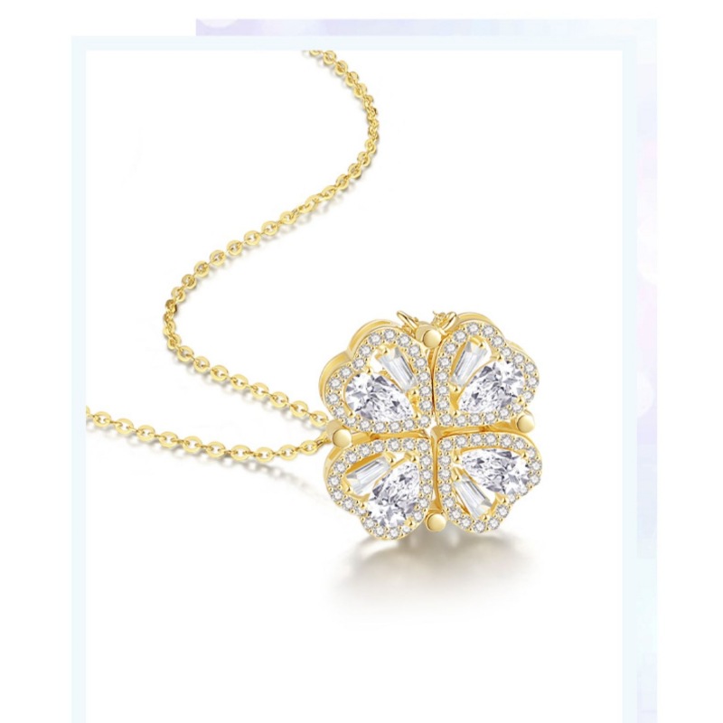 Color: Heart-shaped four-leaf clover necklace (yellow gold)