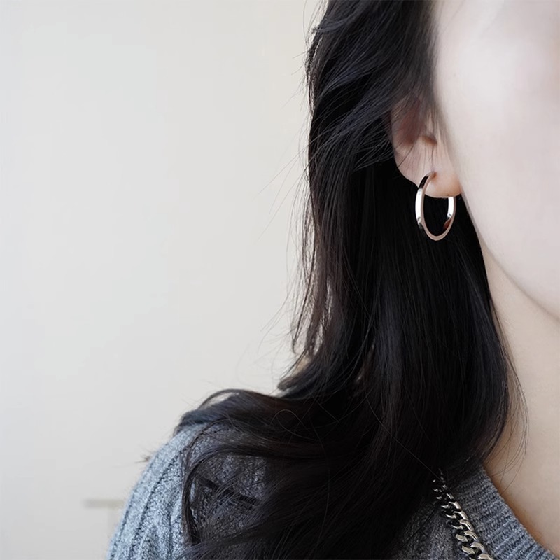 S925 Sterling Silver Cold Style Plain Hoop Earrings for Women 2025 New Popular Earrings Accessible Luxury Niche High-End Autumn and Winter Earrings