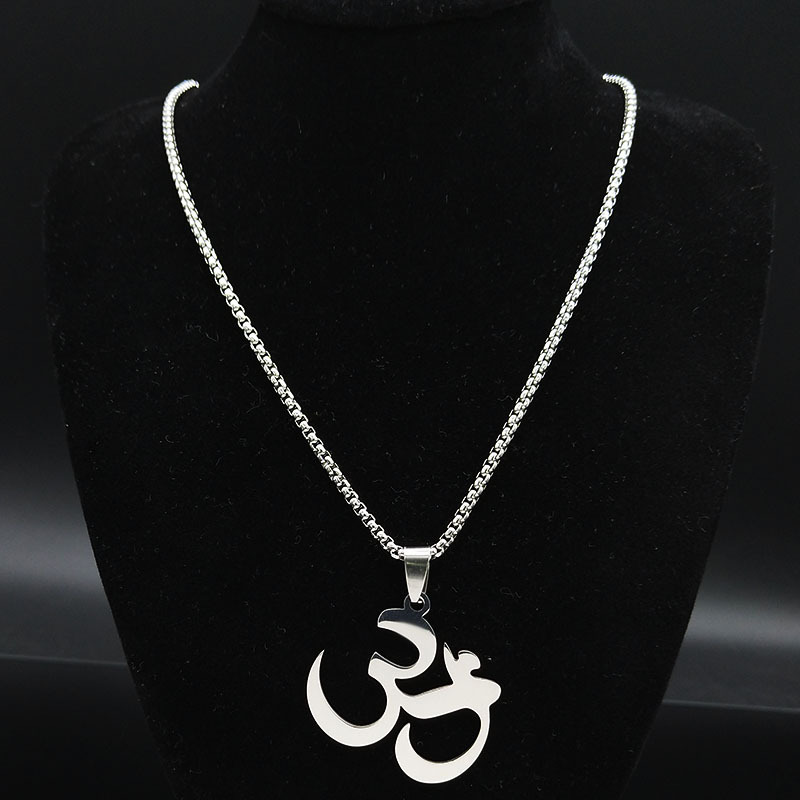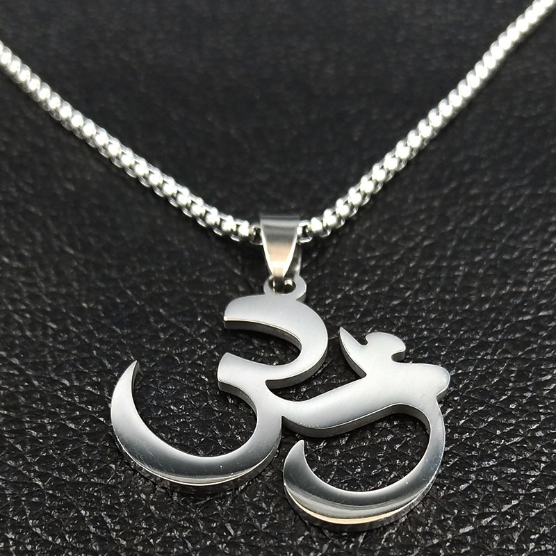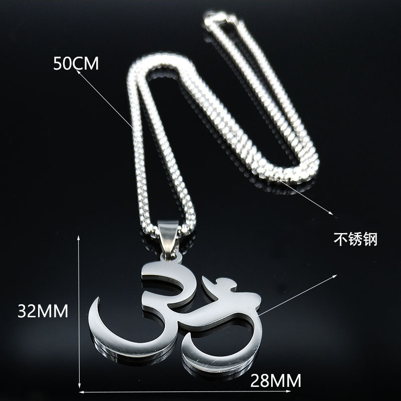 Cross-Border Indian Buddha Elements Om Pendant Necklace Silver Women's Stainless Steel Yoga Lucky Necklace Jewelry