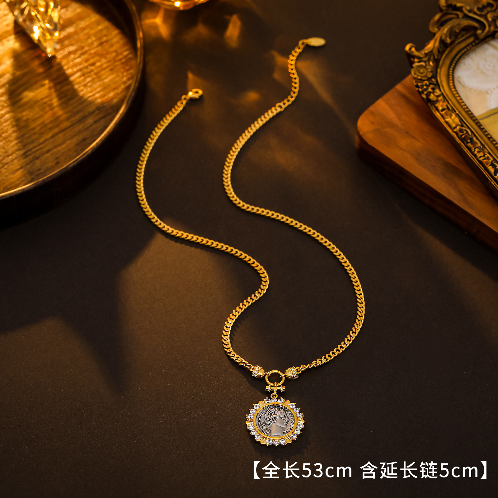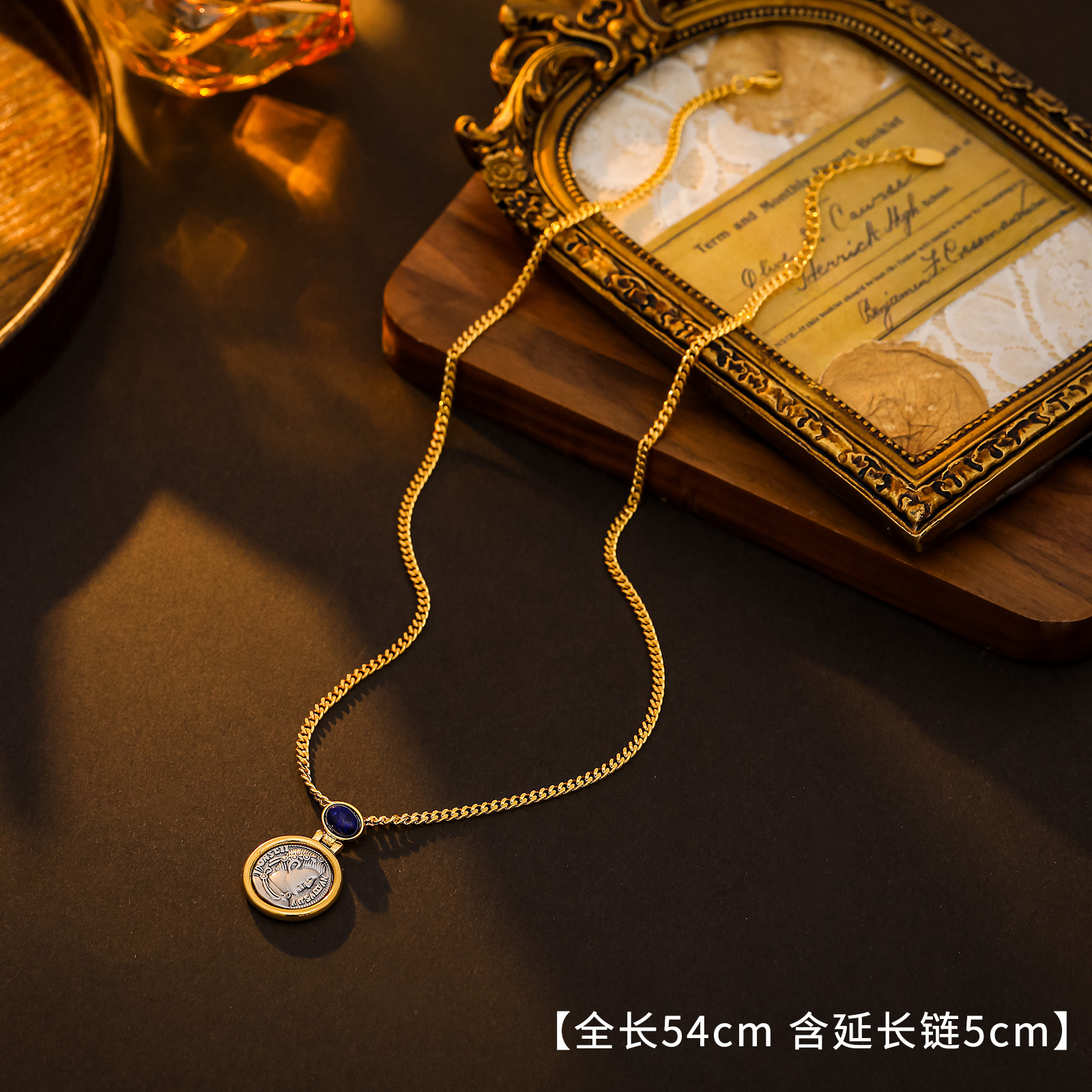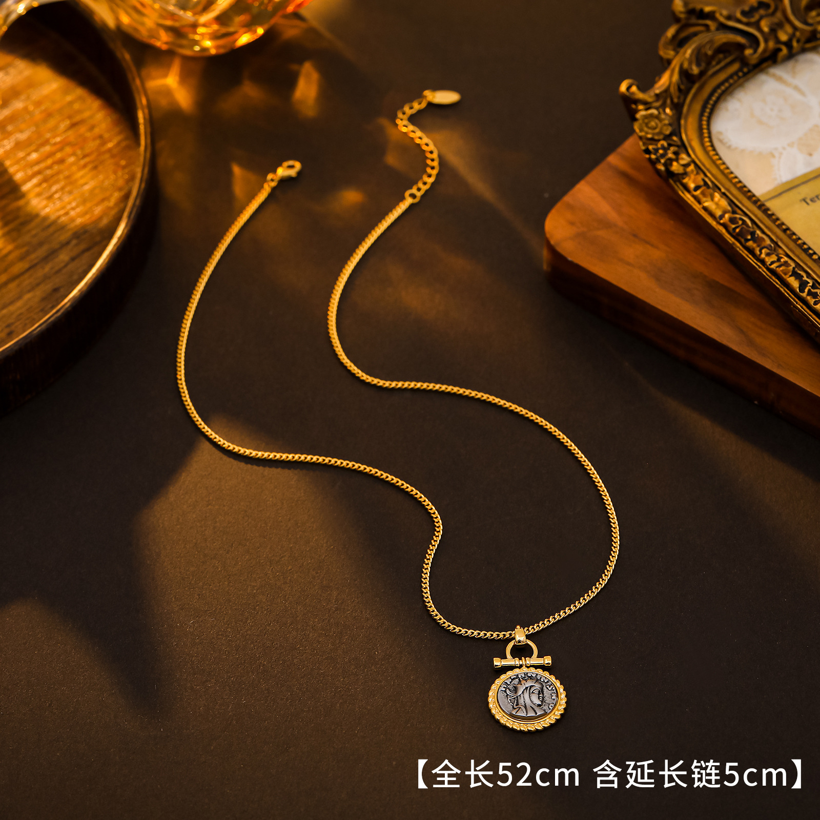 Color: Roman silver coin necklace 1#